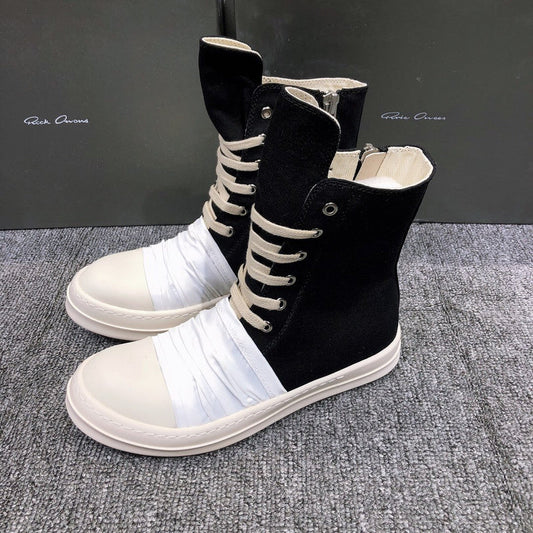 Rick Owens Canvas High-Top Sneakers - Black and White