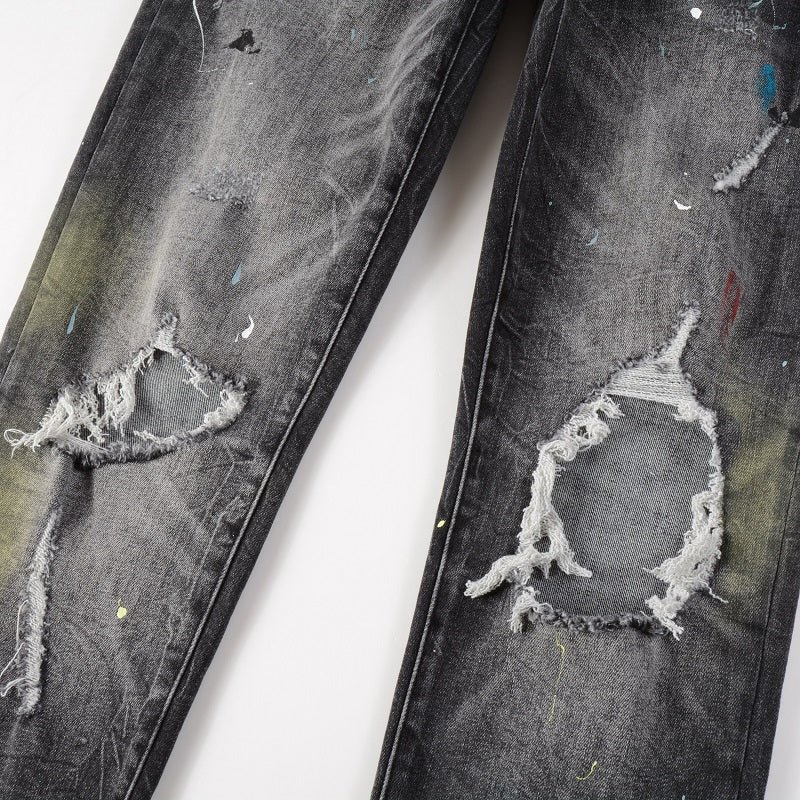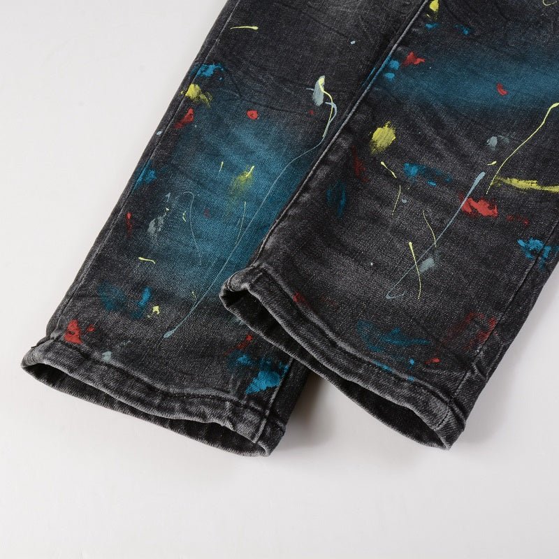 Upgrade your denim with the Amr Paint Sprayed Black Jeans. Premium jeans with authentic wash and quality stitching.