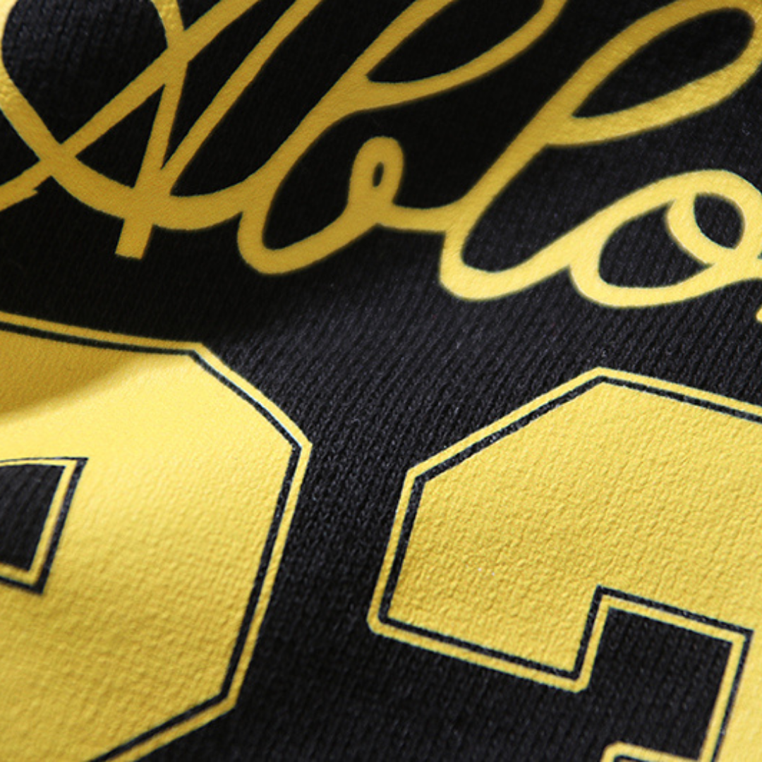- Do not iron directly on prints or logos.