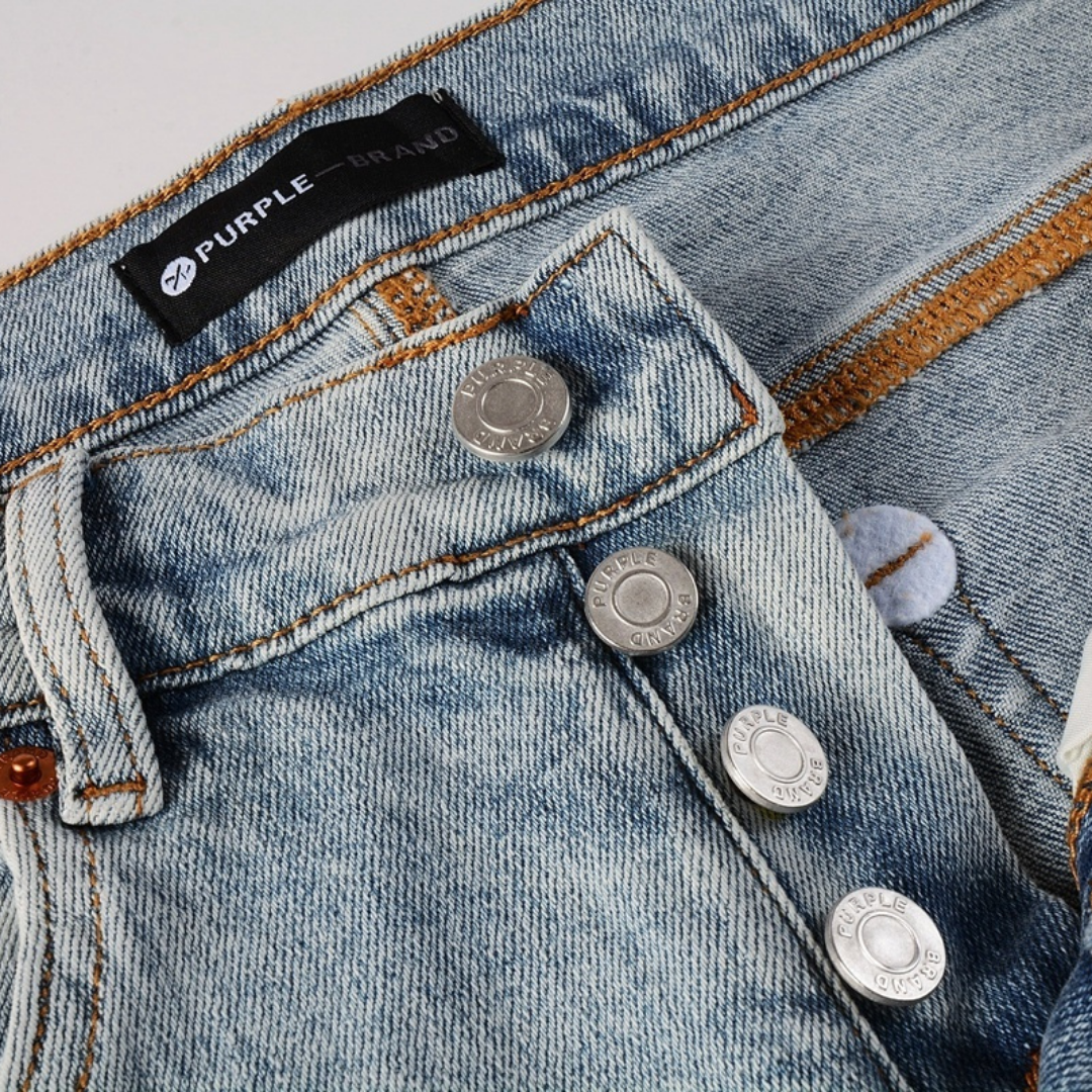 Upgrade your denim with the Purple Paint Light Blue Jeans. Premium jeans with authentic wash and quality stitching.