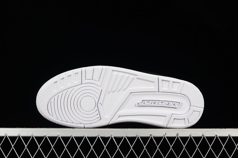 Signature elephant print overlays on the toe and heel, typically a hallmark of the Air Jordan 3, are subtly incorporated in a matching black, adding texture and depth without disrupting the sleek monochromatic theme. This design choice pays homage to the classic elements of the Air Jordan 3 while offering a modern twist.