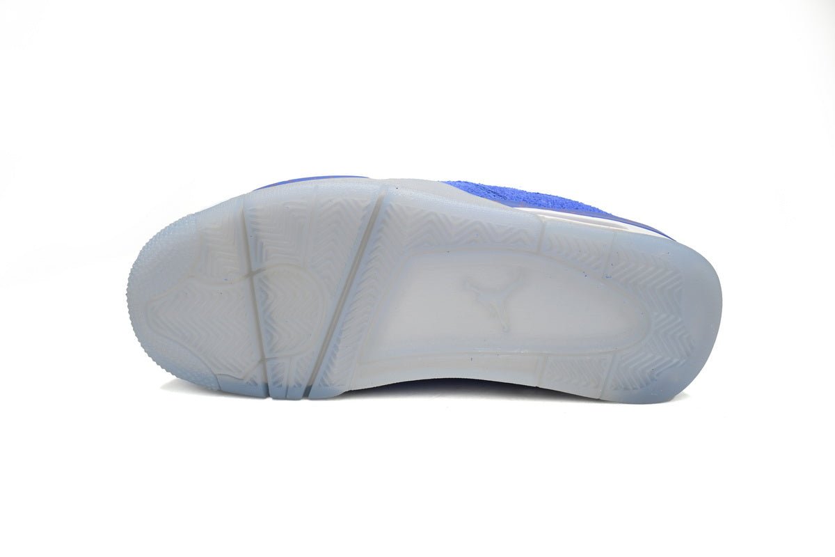 The upper of the Air Jordan 4 Retro Florida features a mix of premium white leather and suede, providing a luxurious and durable foundation. It is accentuated with striking orange and blue highlights, reflecting Florida’s bright and energetic vibe. The orange pops on the eyelets, lace wings, and midsole, while blue accents are featured on the heel tab and flight tag on the tongue, creating a dynamic and eye-catching contrast.