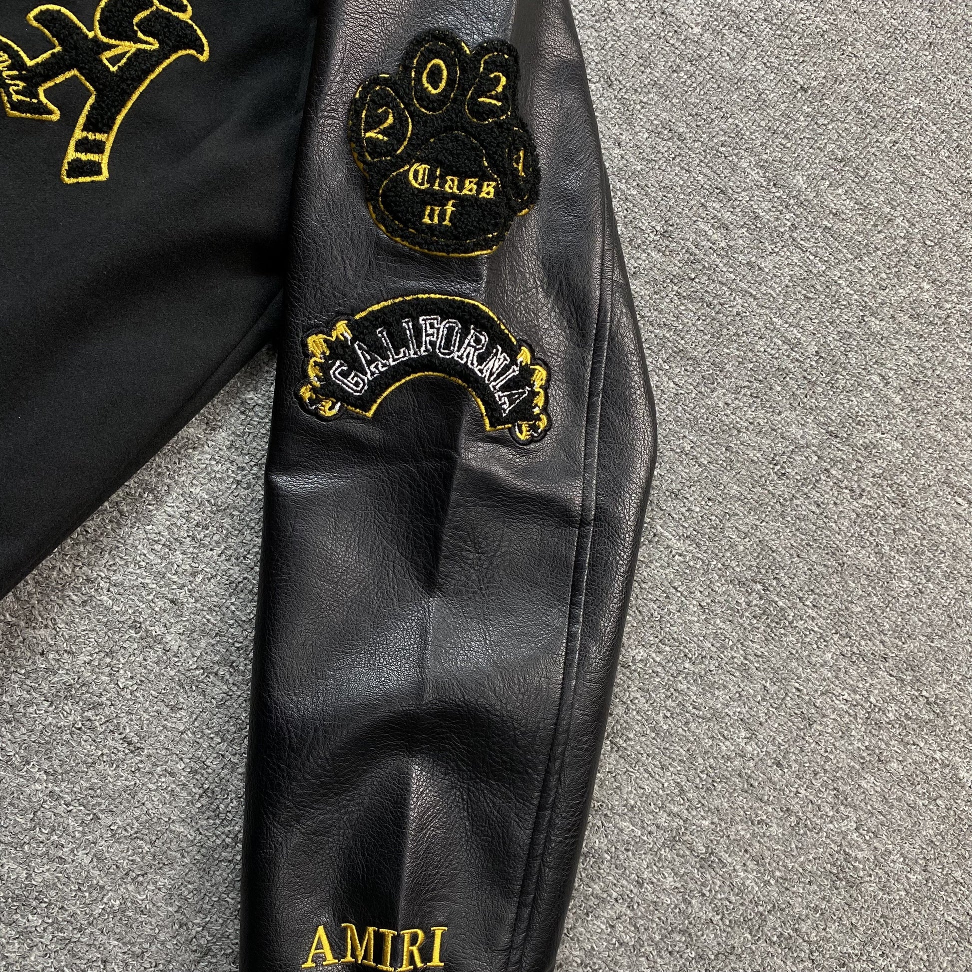 The AMIRI LION VARSITY JACKET - REPLICA embodies luxury streetwear with a rebellious edge, making it a statement piece for those who move with confidence. Crafted from premium wool and leather, this varsity jacket delivers a structured yet comfortable fit, blending classic athletic aesthetics with Amiri’s signature rockstar energy.