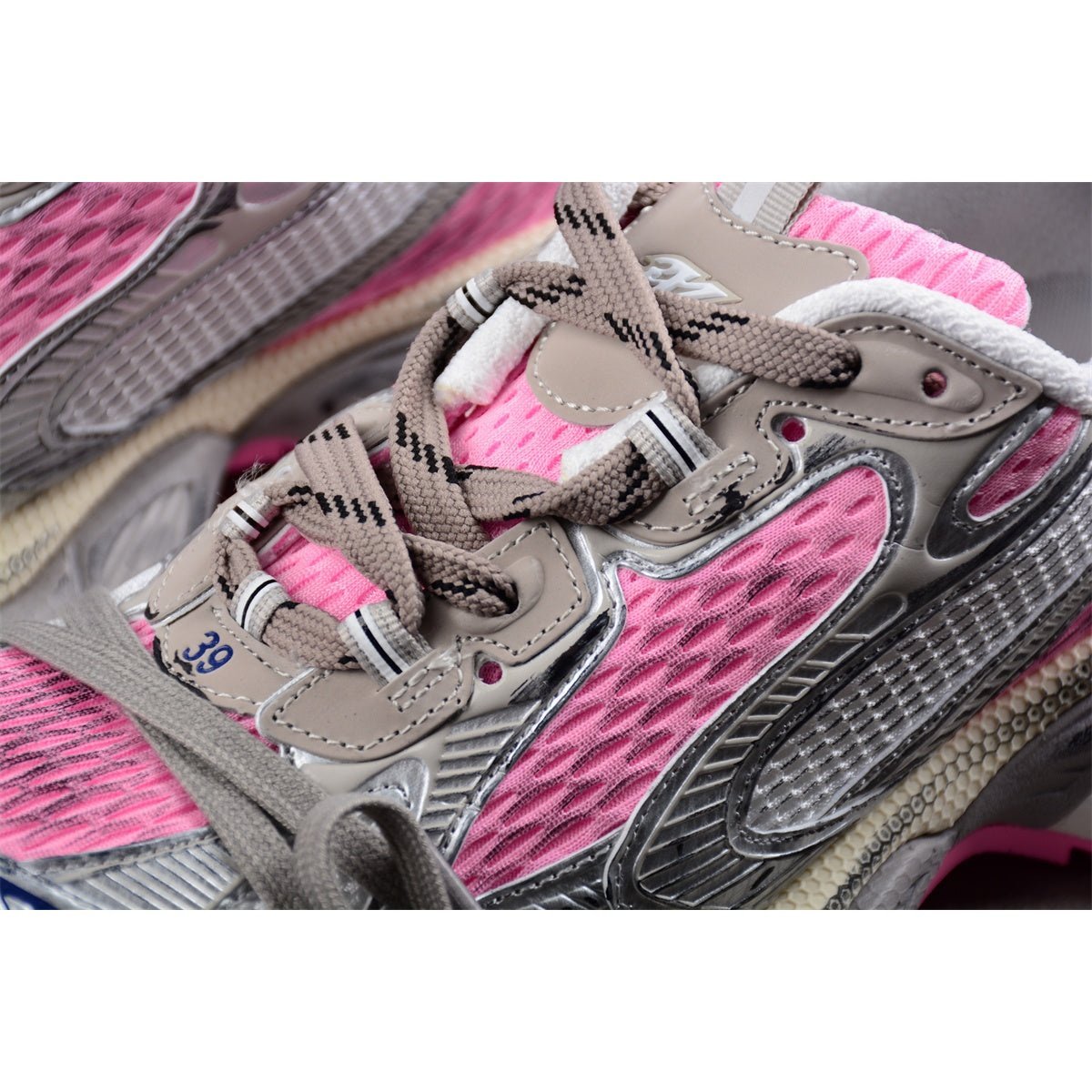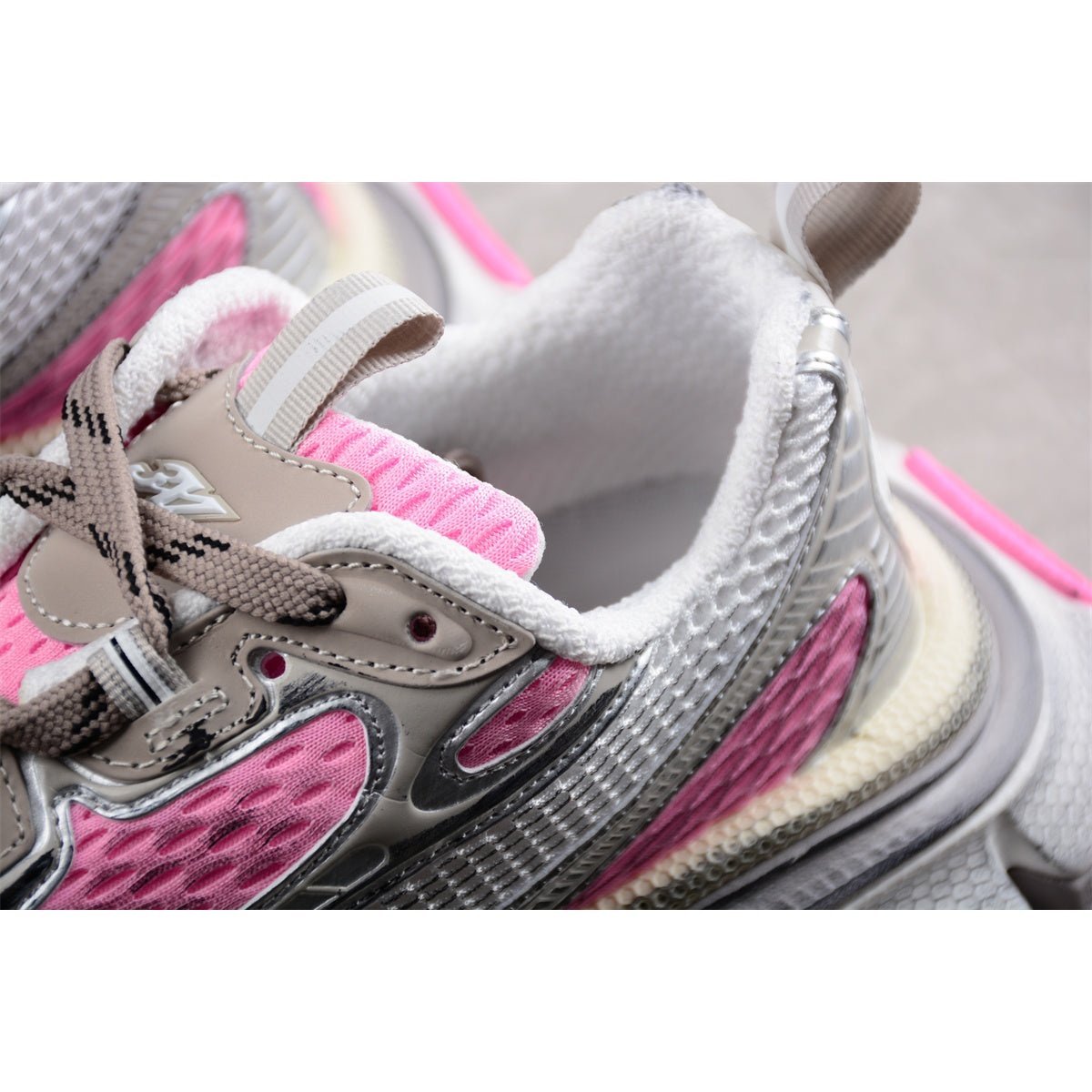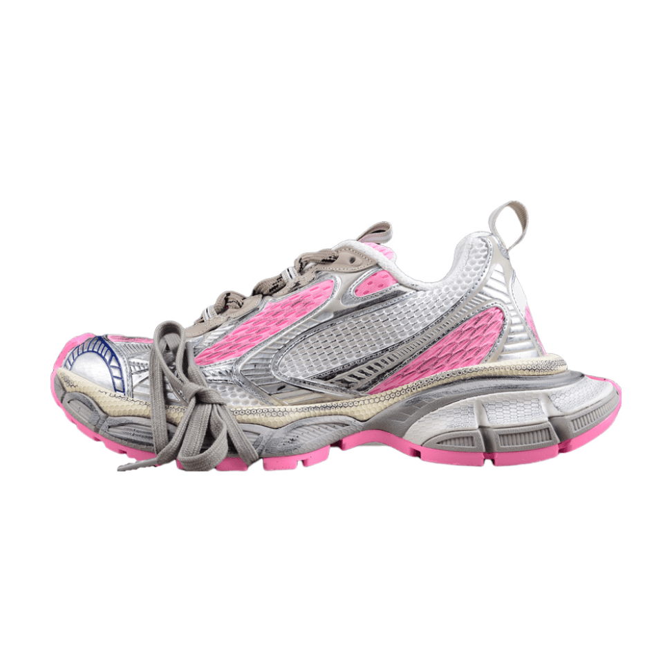 The BALENCIAGA 3XL x Silver Pink sneakers blend futuristic design with a touch of femininity, presenting a striking colorway that stands out. These luxurious sneakers feature a shimmering silver base with soft pink accents, creating an elegant yet bold aesthetic. The signature oversized silhouette of the 3XL line is maintained, offering an exaggerated and eye-catching profile. Crafted from premium materials, the sneakers ensure durability and comfort, with a chunky, layered sole that provides excellent support and cushioning. Ideal for those who dare to make a statement, the 3XL x Silver Pink sneakers fuse high-fashion sensibility with innovative design.