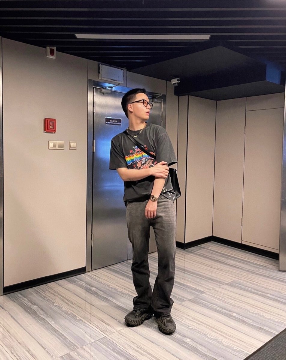 This black Balenciaga t-shirt brings a burst of '90s nostalgia with its vibrant, neon logo reminiscent of classic arcade style. The design features the Balenciaga name in a playful, colorful font surrounded by stars, giving it a lively and youthful look. The tee is splattered with subtle white paint marks, adding an edgy, distressed finish. This t-shirt is perfect for anyone looking to capture the fun and flamboyance of the '90s in a contemporary, high-fashion context.