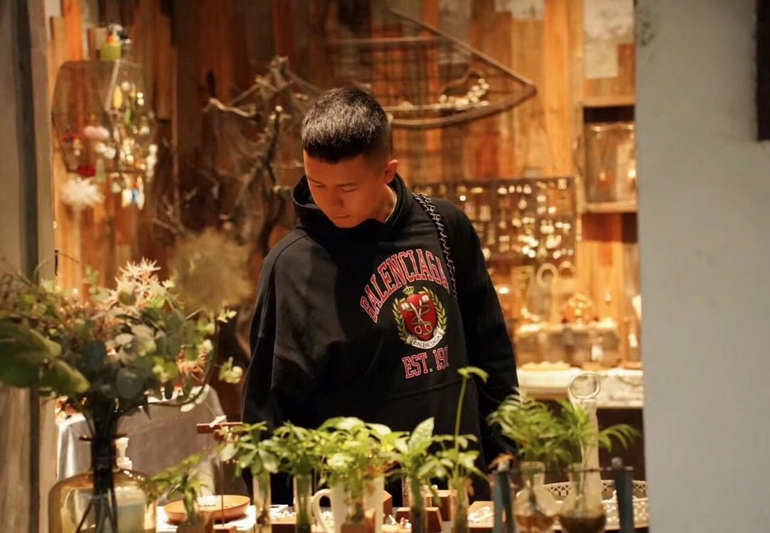 This Balenciaga hoodie features a prominent crest design in red and gold, highlighting the brand's name and the establishment year "1917." The bold graphics stand out against the black background, offering a vintage-inspired look. Made from premium materials, this hoodie ensures both comfort and durability. It includes a drawstring hood and a front pocket, adding functionality to its stylish design. Perfect for casual wear, this hoodie combines Balenciaga's heritage with modern streetwear appeal.