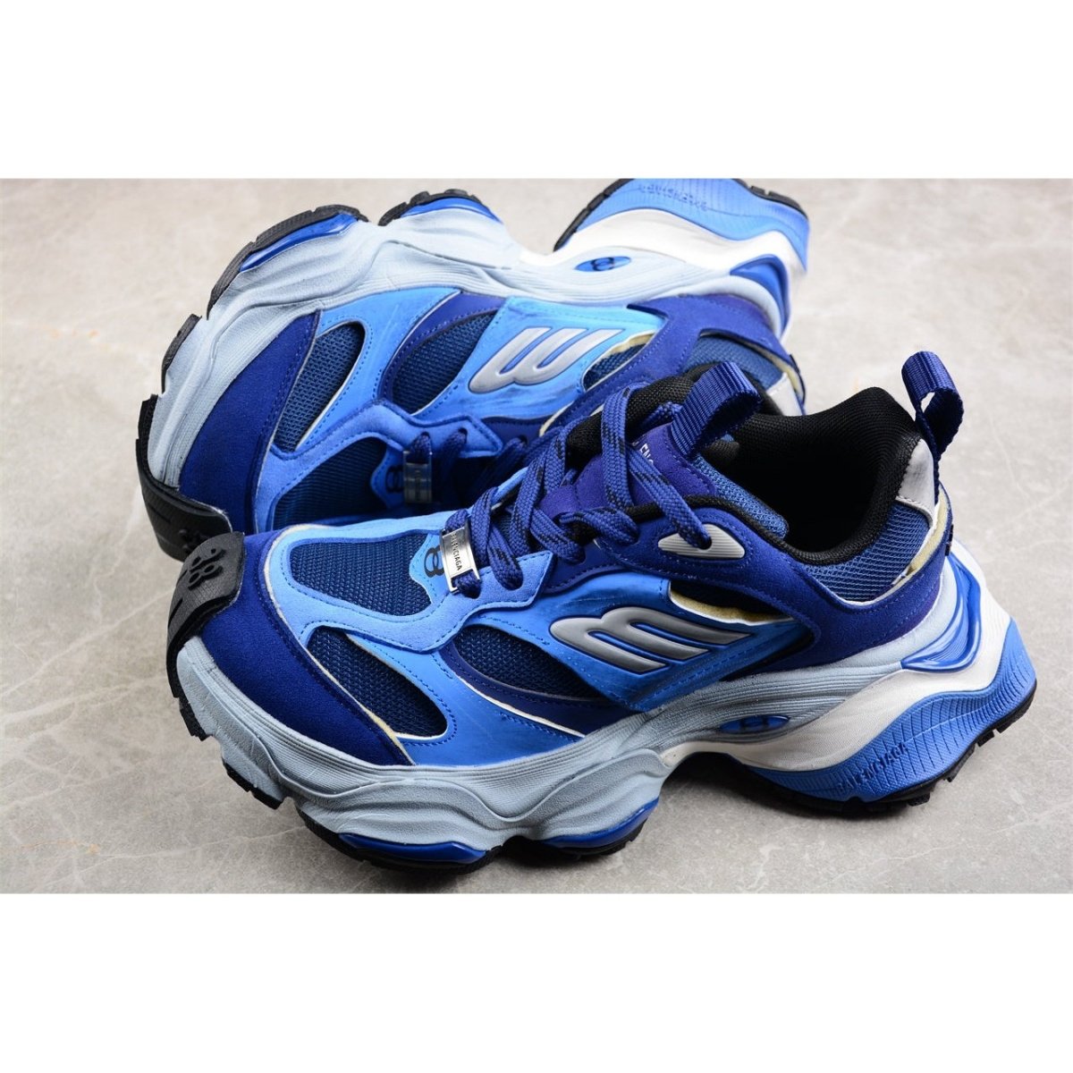 Introducing the BALENCIAGA Cargo x Dark Blue, a perfect blend of utilitarian design and high fashion. These sneakers feature a rich dark blue hue, adding a sophisticated edge to any ensemble. Crafted from premium materials, the Cargo offers exceptional durability and comfort, with a rugged sole designed for optimal grip and support. The design includes functional cargo-inspired pockets and subtle logo accents, enhancing its practical yet stylish appeal. Perfect for urban explorers and fashion enthusiasts alike, the BALENCIAGA Cargo x Dark Blue combines practicality with modern aesthetics, making it a standout addition to your footwear collection. Elevate your style with this versatile pair.