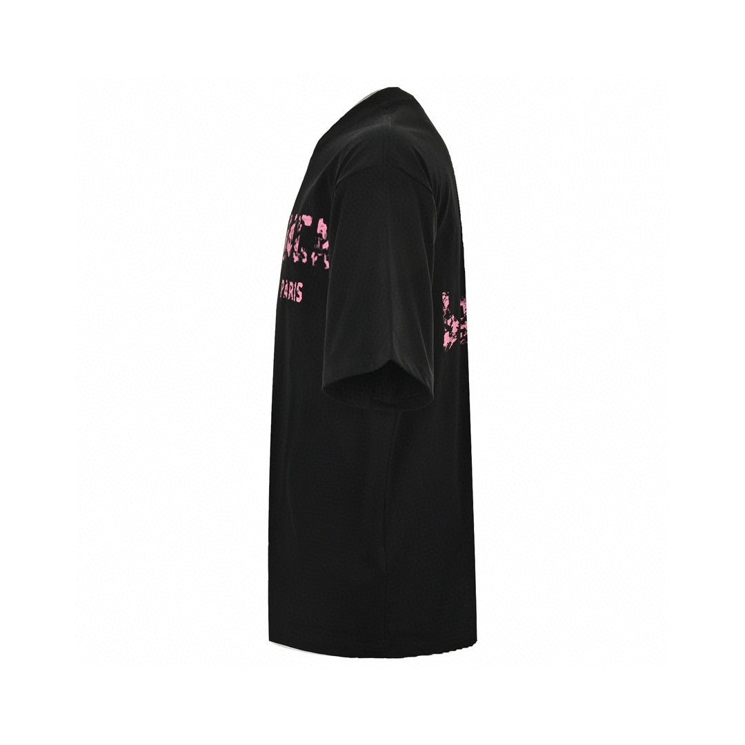 The Balenciaga Distressed Logo T-Shirt in black offers a striking addition to your casual attire. Crafted from high-quality cotton, this t-shirt guarantees a soft, comfortable fit. It features the signature Balenciaga logo, printed in a distressed, textured style with a vibrant pink hue, providing a bold contrast against the black fabric. The classic crew neck and relaxed fit make it versatile and easy to pair with various wardrobe pieces, from denim jeans to shorts. This t-shirt is perfect for those who want to make a statement with their everyday look, blending comfort with high-fashion flair.