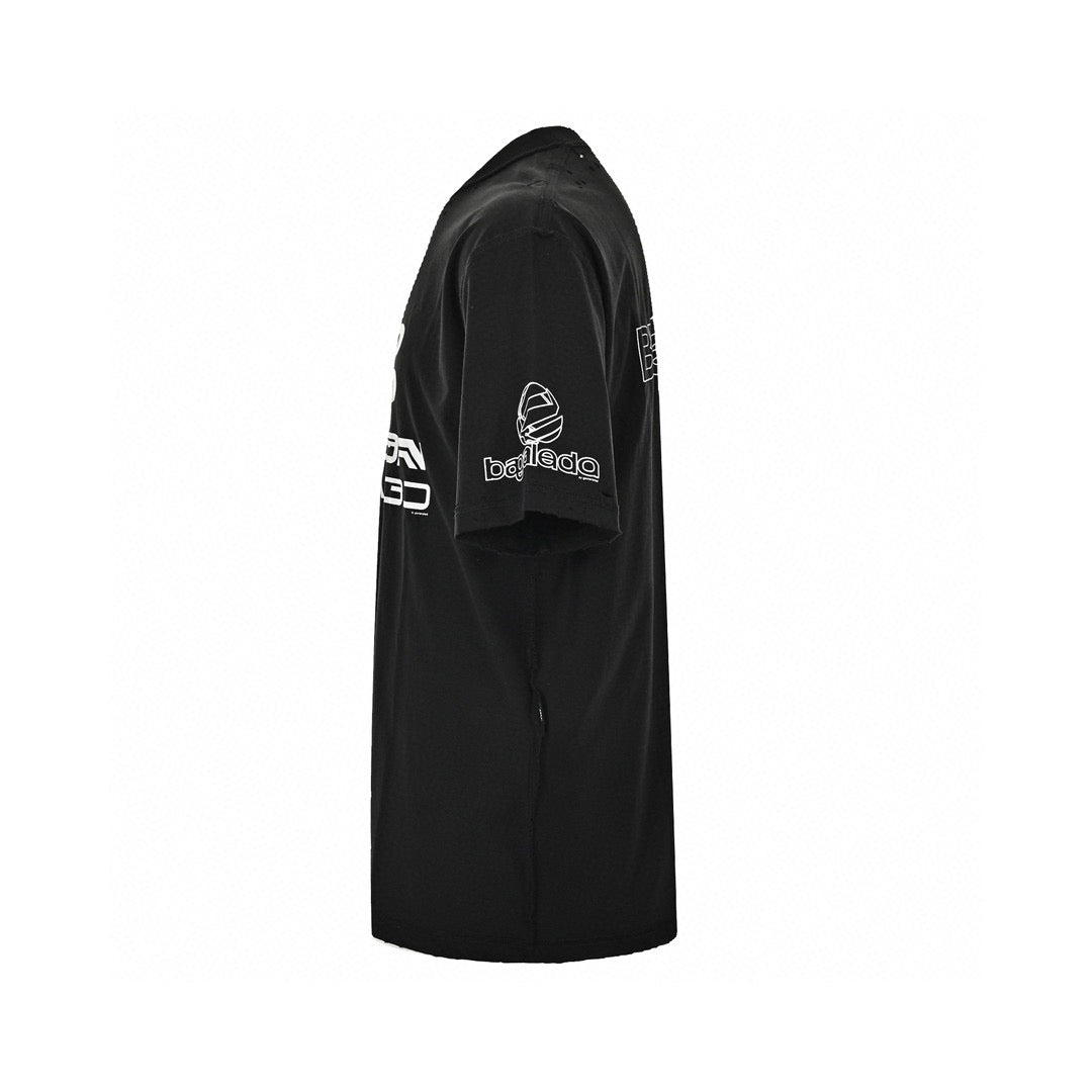 This Balenciaga t-shirt features a bold graphic design with multiple "BB" logos and text across the front and sleeves. Made from high-quality black cotton, it combines comfort with a distinctive and modern style. Perfect for making a fashion statement, this t-shirt adds an edgy touch to any casual outfit.