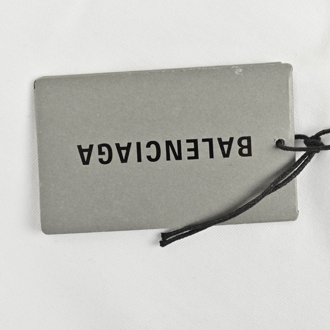 This Balenciaga t-shirt features a unique multicolor graphic logo on the front, combining vibrant colors with a distinctive design. The classic white background enhances the bold and artistic look, making it a standout piece for any fashion-forward wardrobe.