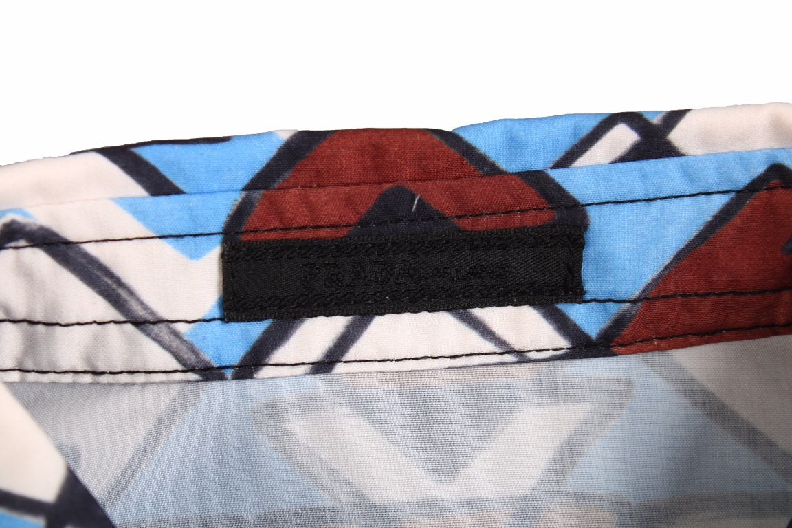 BALENCIAGA PATTERNED SHORT SLEEVE SHIRT BLUE BROWN