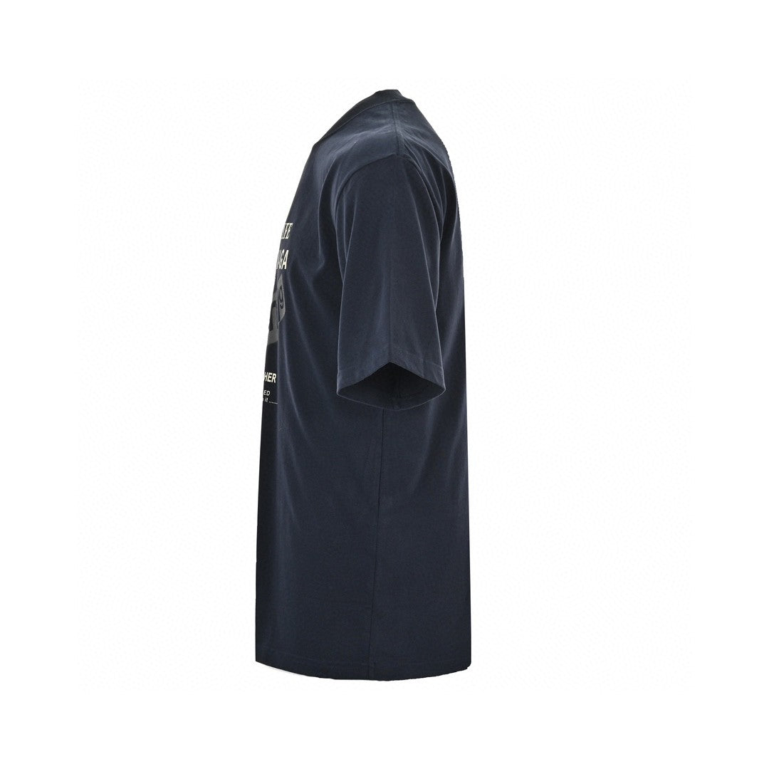 This Balenciaga t-shirt features a minimalist design with a focus on the back. The navy fabric creates a clean, sophisticated look, while the small black Balenciaga logo tag at the bottom of the back adds a subtle touch of branding. Ideal for those who appreciate understated fashion with a hint of designer detail.