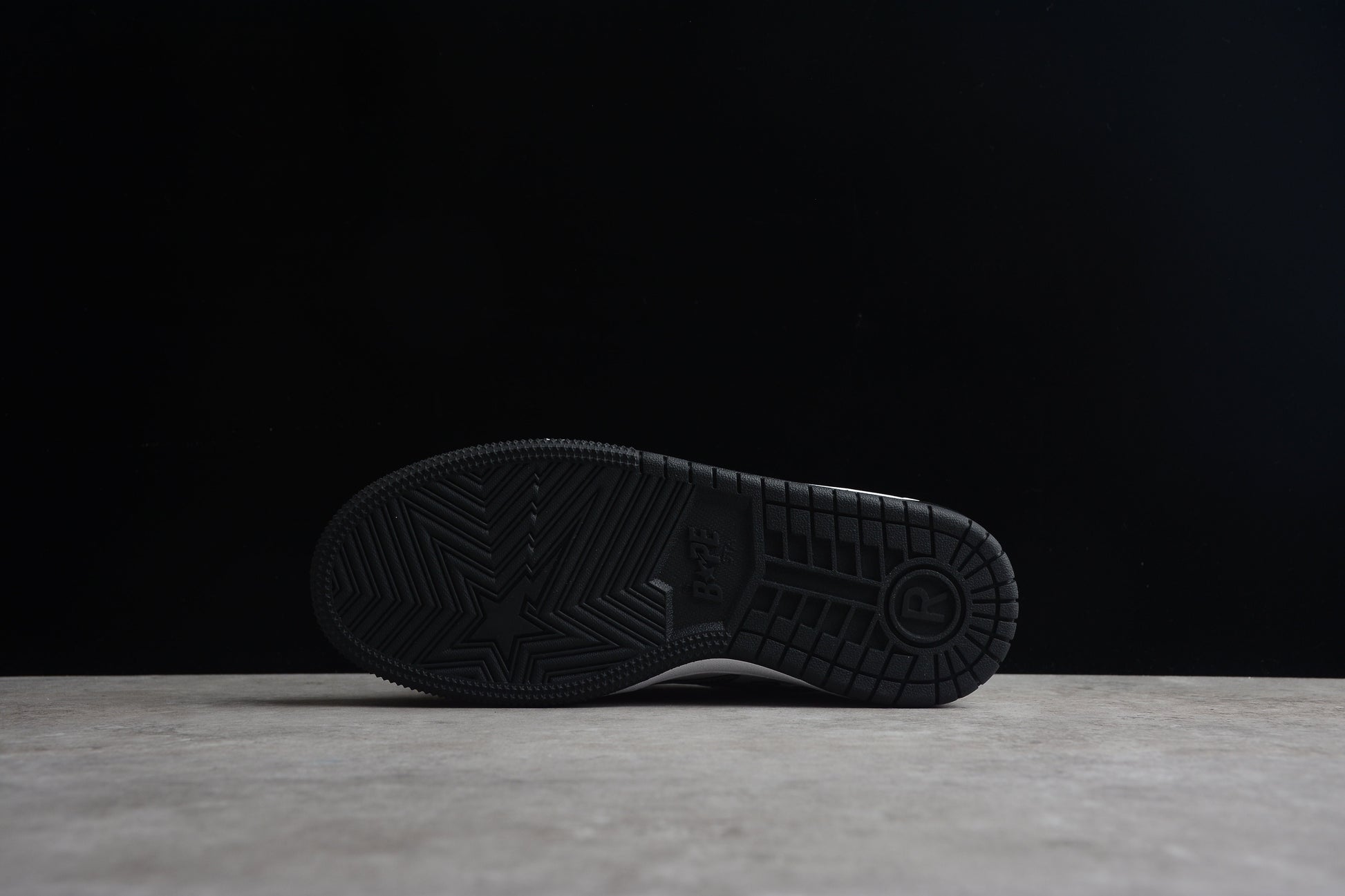 Crafted with premium leather, these sneakers offer durability and a luxurious feel. The white base is embossed with subtle BAPE camo patterns, adding texture and depth to the design. The black BAPE star logo on the side provides a striking contrast, highlighting the brand’s iconic motif.
