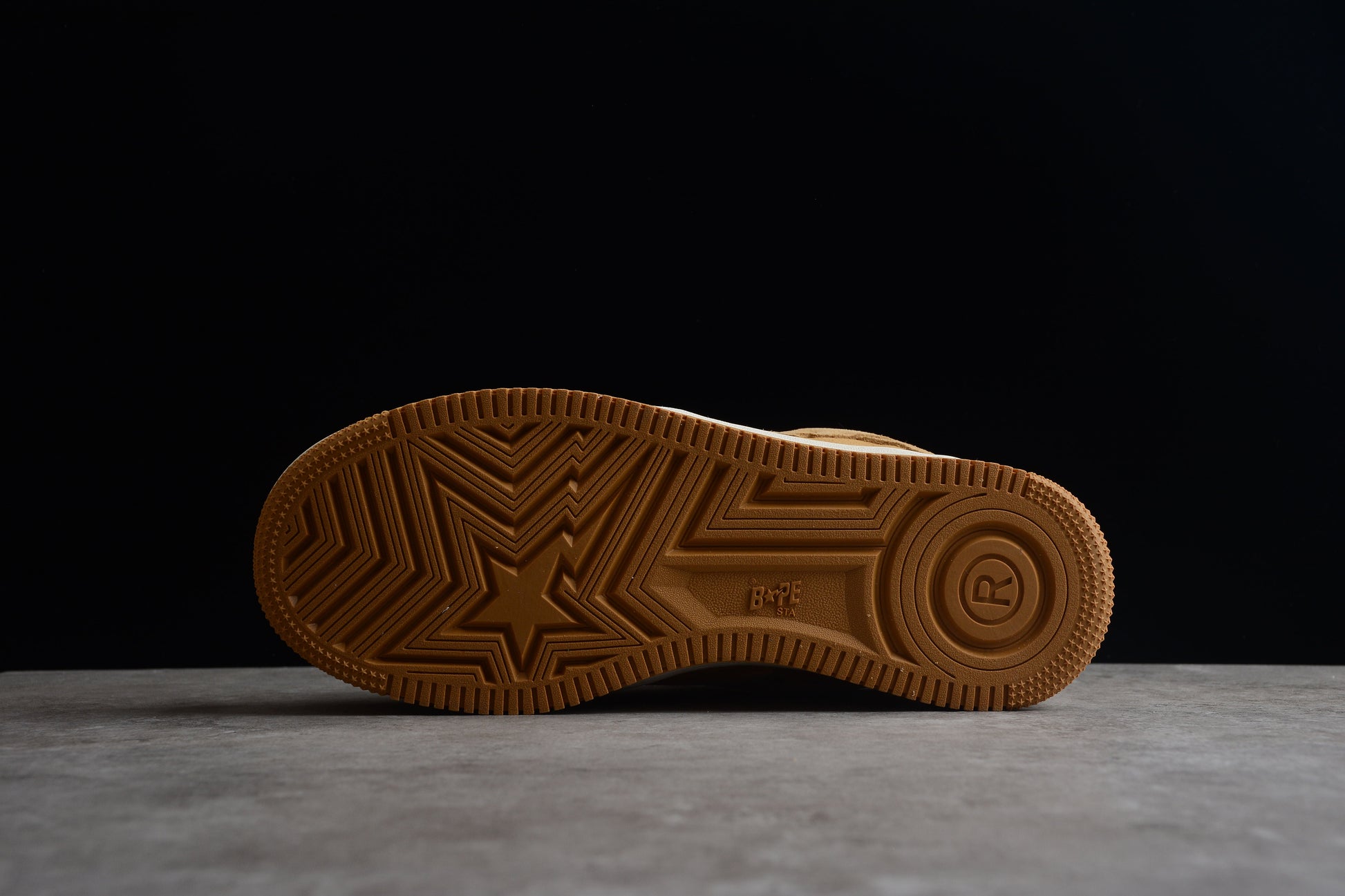 The rubber outsole of the BAPE STA Low-Top Tan Suede Sneakers ensures durability and reliable traction. The textured sole provides stability on various surfaces, while the cushioned midsole offers superior impact absorption, reducing strain on your feet. These features make the sneakers not only stylish but also practical for everyday activities.
