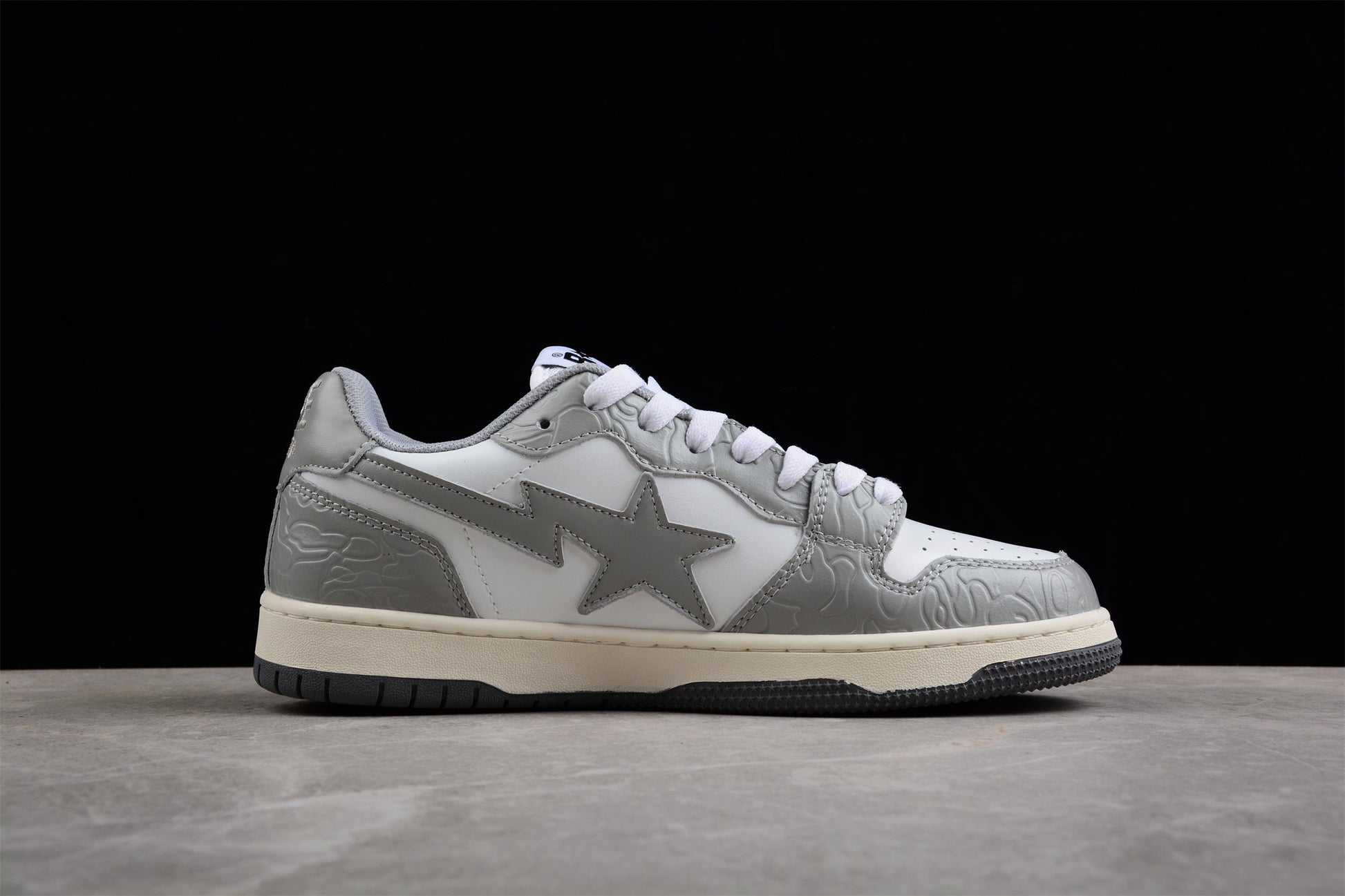 **BAPE STA Low-Top Sneakers in White and Gray**