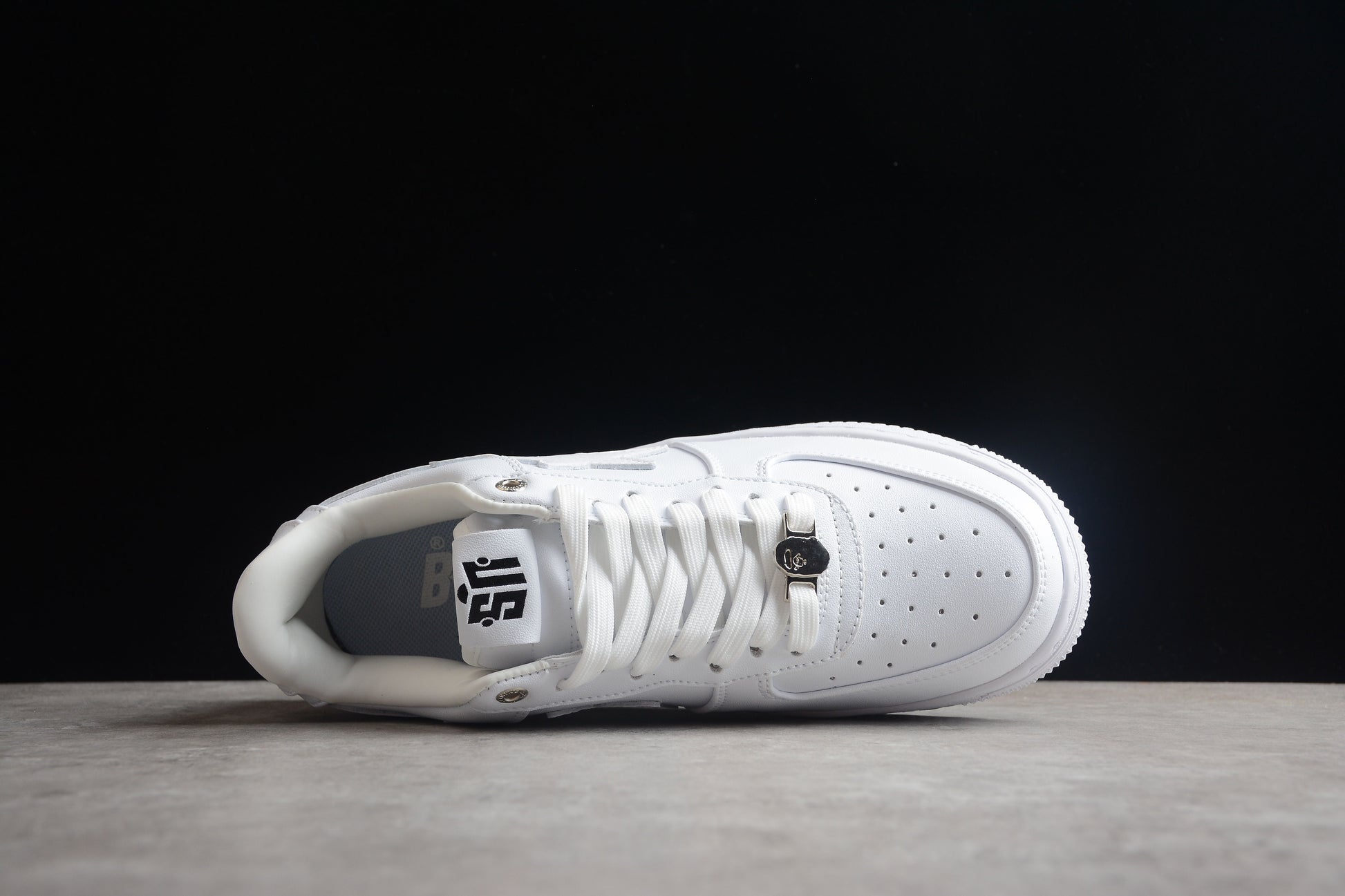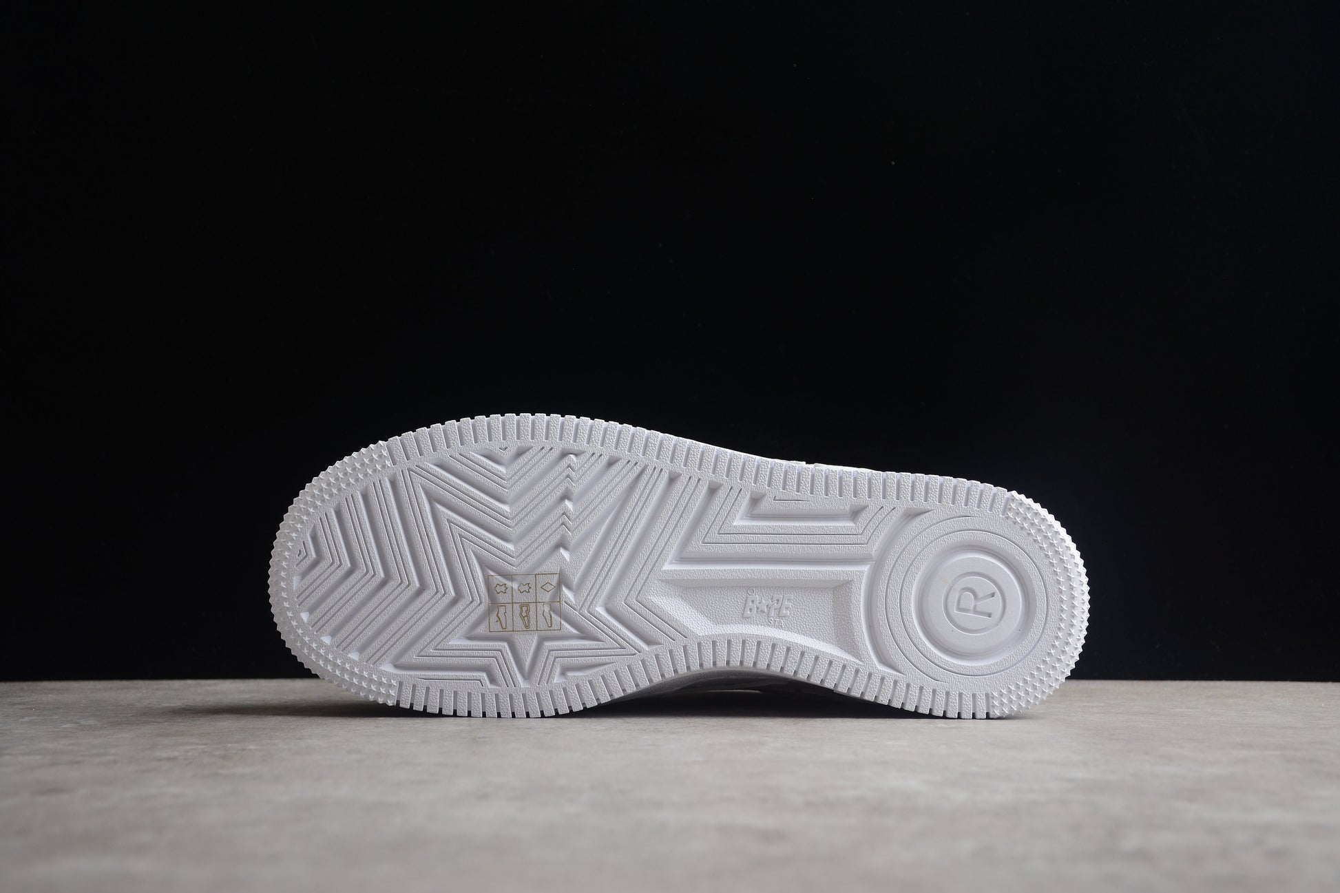 Crafted with high-quality leather, the upper of these sneakers features a monochromatic white design, giving them a sleek and modern look. The iconic BAPE star logo is subtly embossed on the sides, maintaining the minimalist theme while showcasing brand identity. The intricate stitching adds a touch of craftsmanship, enhancing the overall appeal of the sneakers.