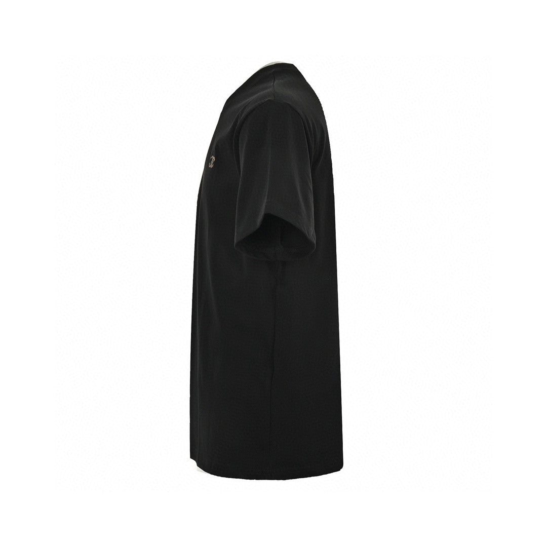 The Chanel Classic Logo T-Shirt in black is a sophisticated and stylish addition to any wardrobe. Crafted from high-quality cotton, this t-shirt provides a luxurious and comfortable feel. The design is elegantly simple, featuring the iconic Chanel double C logo subtly embroidered on the chest, showcasing understated luxury. With its classic crew neck and relaxed fit, this t-shirt is versatile, perfect for pairing with a variety of outfits, from casual jeans to chic skirts. This piece captures the essence of Chanel's timeless style, making it a must-have for those who appreciate classic fashion with a modern touch.