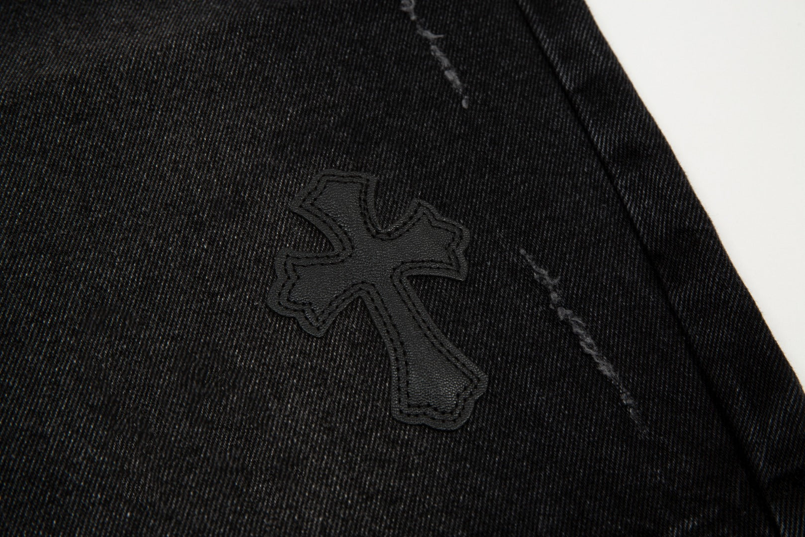 ✔ Color: Deep black denim with matching black cross patches for a sleek, low-key aesthetic