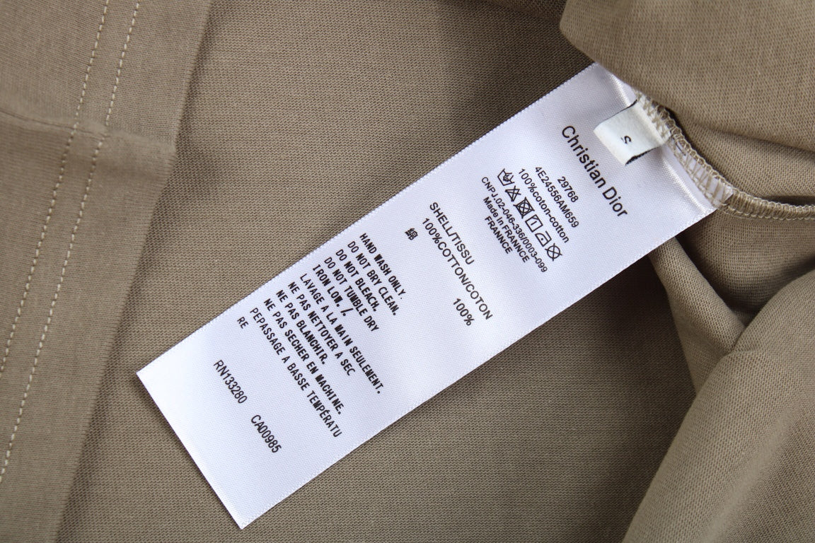 This Dior t-shirt features a minimalist design with the "CD" logo embroidered on the chest in white. The t-shirt is khaki, providing a neutral and versatile look. Made from high-quality materials, it offers both comfort and style. Perfect for a sleek and understated casual outfit.