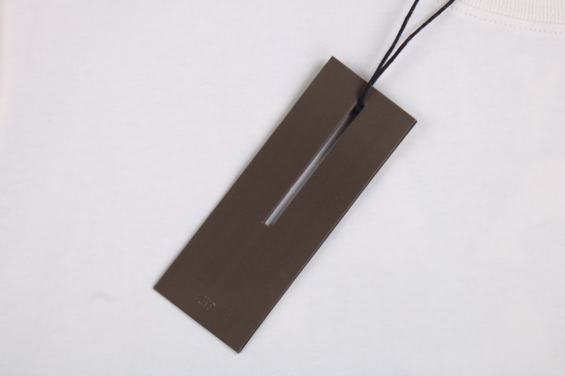 White t-shirt featuring a distinctive "DIOR" logo in a gradient color scheme on the chest. Made from high-quality fabric for a comfortable and stylish fit. Perfect for adding a subtle pop of color to any casual outfit.