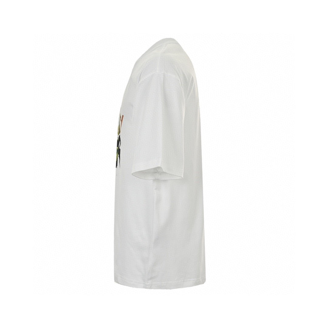 This Dior t-shirt features a playful green monster graphic intertwined with the brand name in bold lettering. The whimsical design, set against a classic white background, adds a fun and unique touch to any wardrobe.