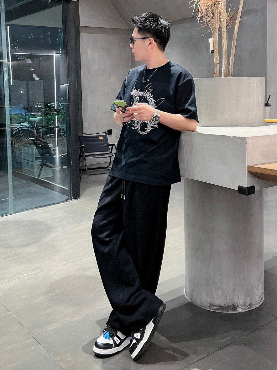 This Dior t-shirt features a unique scribble design forming the iconic Dior logo. Made from high-quality black cotton, it combines a playful yet sophisticated look. Perfect for casual outings or making a subtle fashion statement.