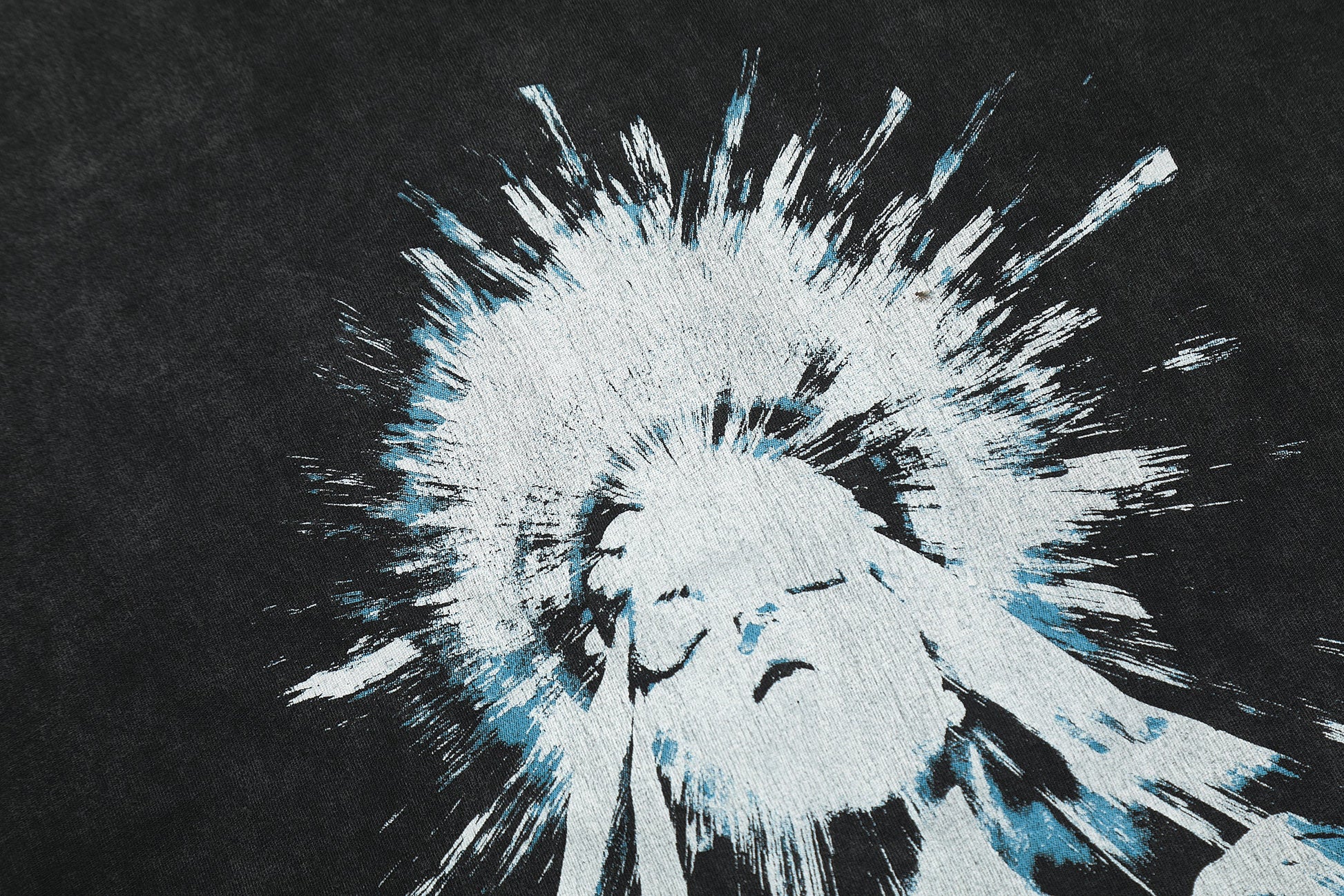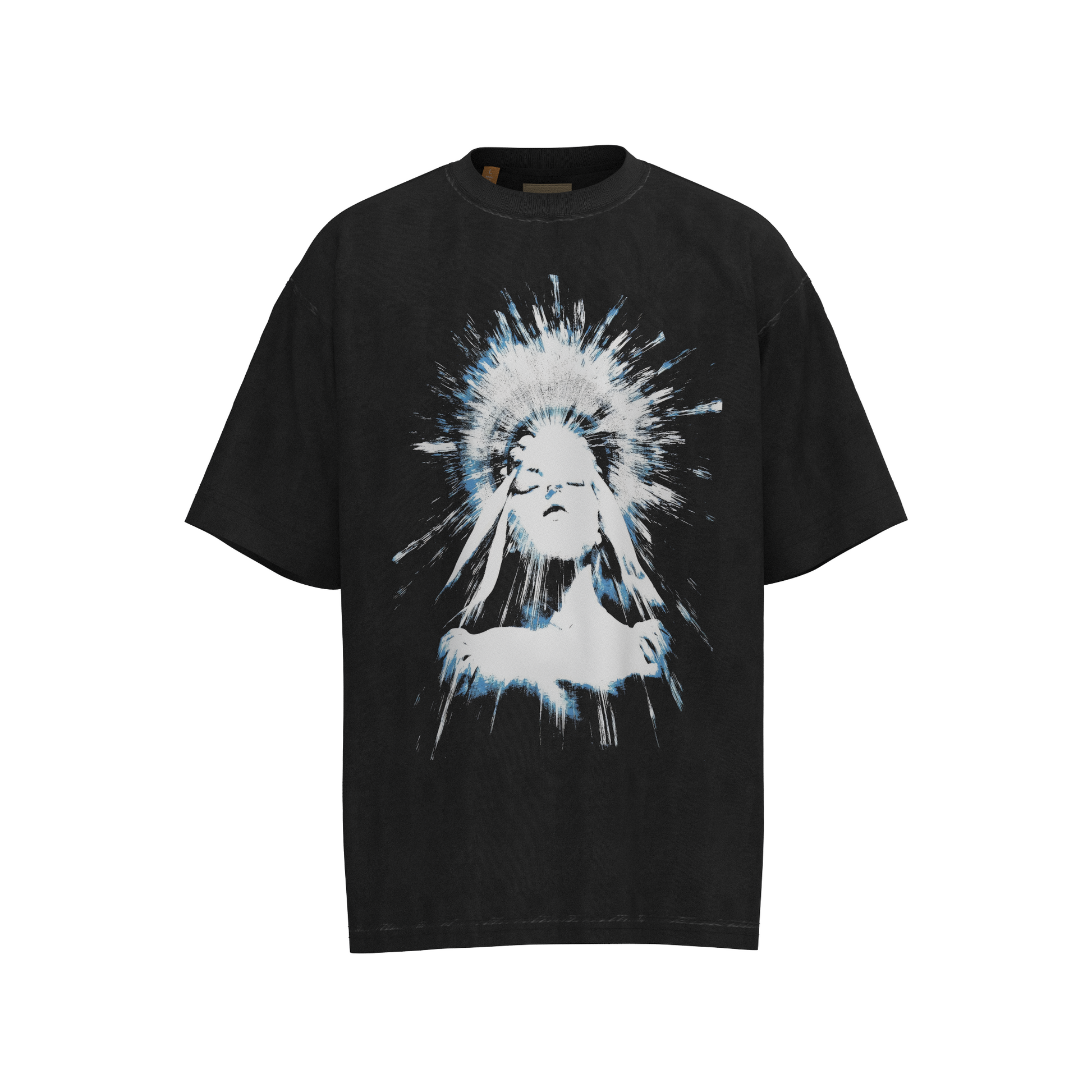 The Gallery Dept. "Enlightened" Tee is a unique and bold addition to your wardrobe. Crafted from high-quality cotton, this black t-shirt offers both comfort and durability, making it perfect for everyday wear. The front of the shirt features a striking graphic of an enlightened figure, rendered in a captivating blue and white design that stands out against the dark background. This artistic representation exudes a sense of mystique and sophistication.