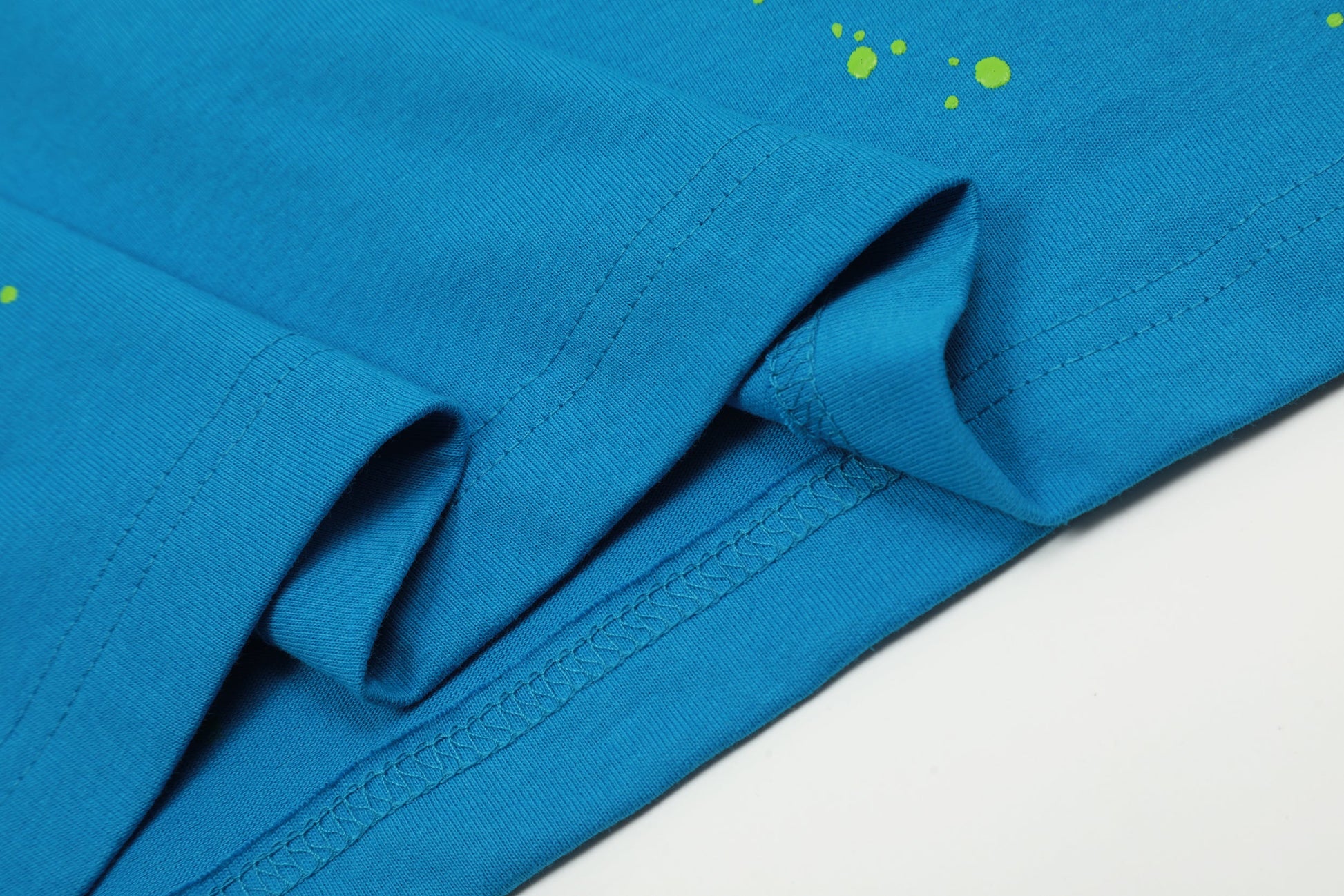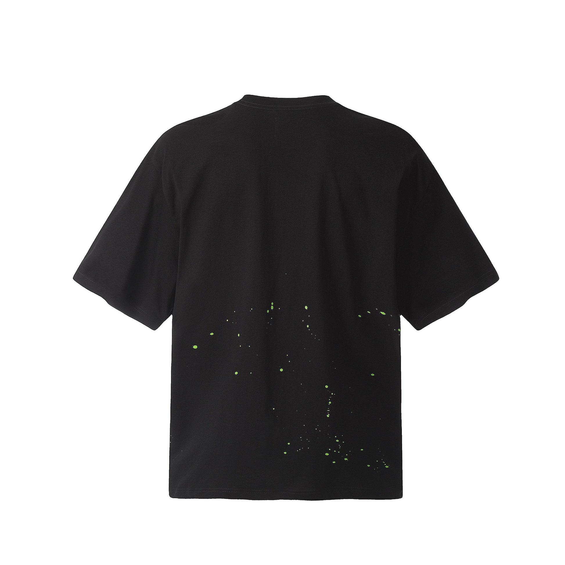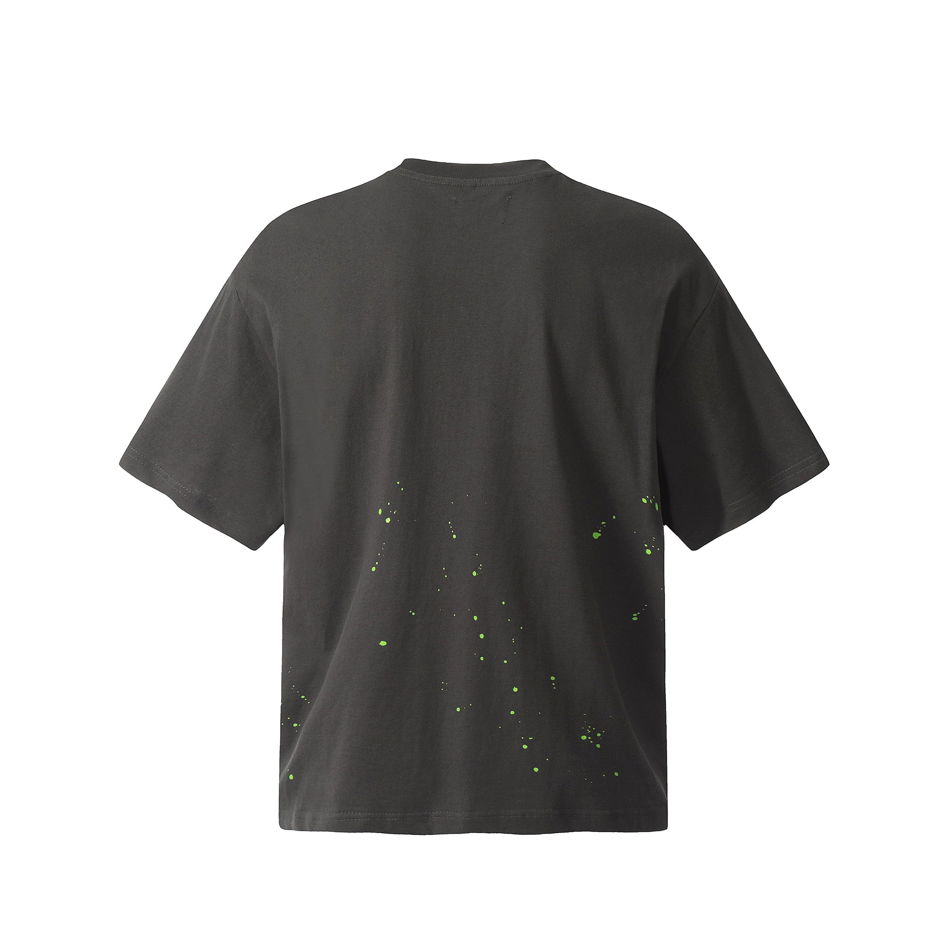 The standout feature of this T-shirt is its unique, hand-painted watercolor splatter design. Each piece is meticulously crafted, ensuring no two shirts are exactly alike. The vibrant splashes of color create a dynamic, eye-catching effect that embodies the spirit of contemporary street art. The distressed detailing adds a vintage feel, giving the shirt a worn-in, beloved look right from the start.