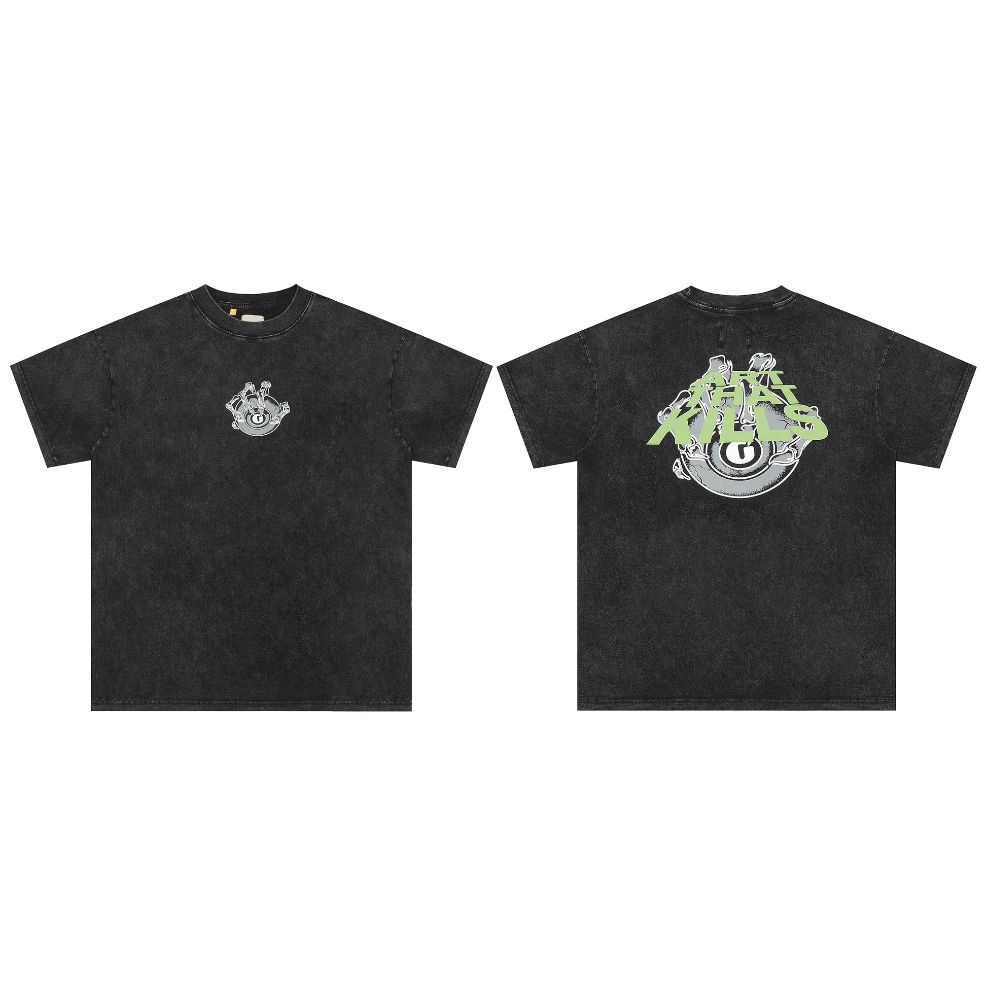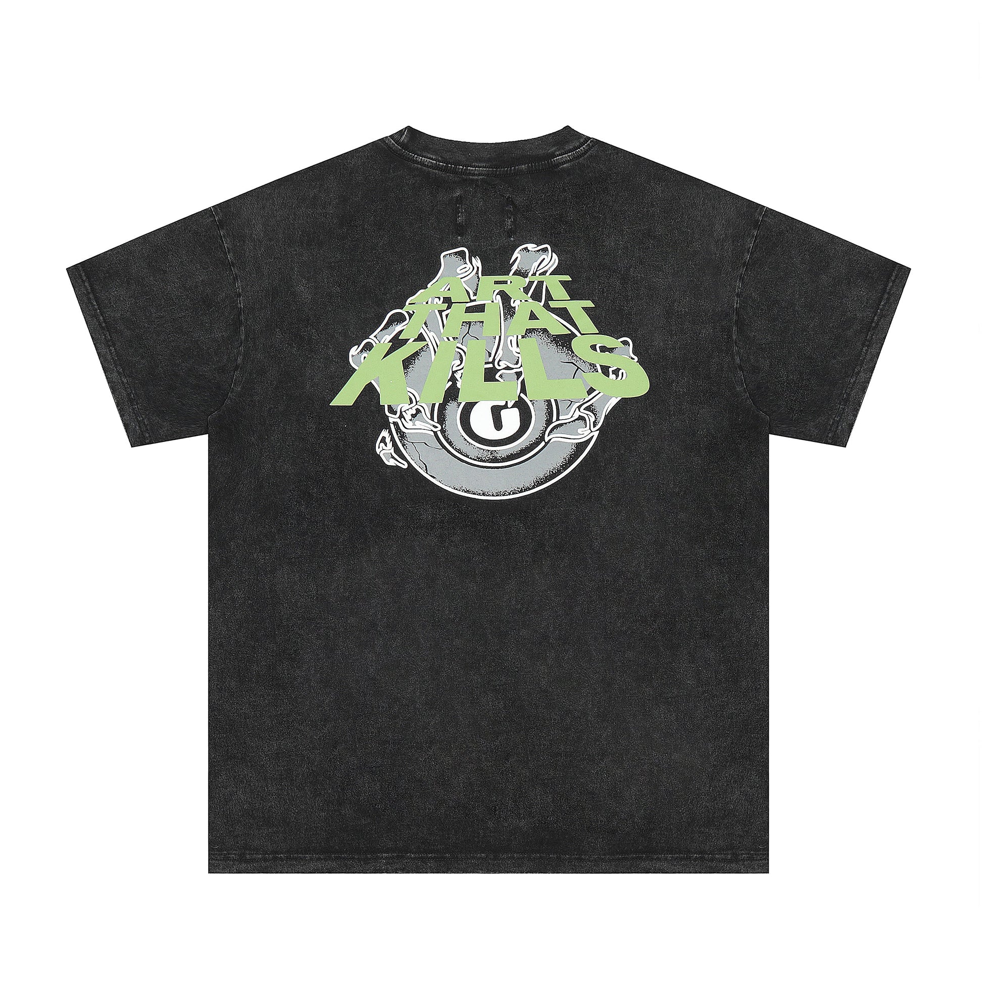 The Gallery Dept. "Art Kills" T-Shirt is a standout piece in any wardrobe, merging bold graphics with a classic silhouette. Crafted from high-quality cotton, this t-shirt offers both comfort and durability, making it perfect for everyday wear. The fabric features a unique washed black finish, giving it a vintage, worn-in look that adds to its edgy appeal.