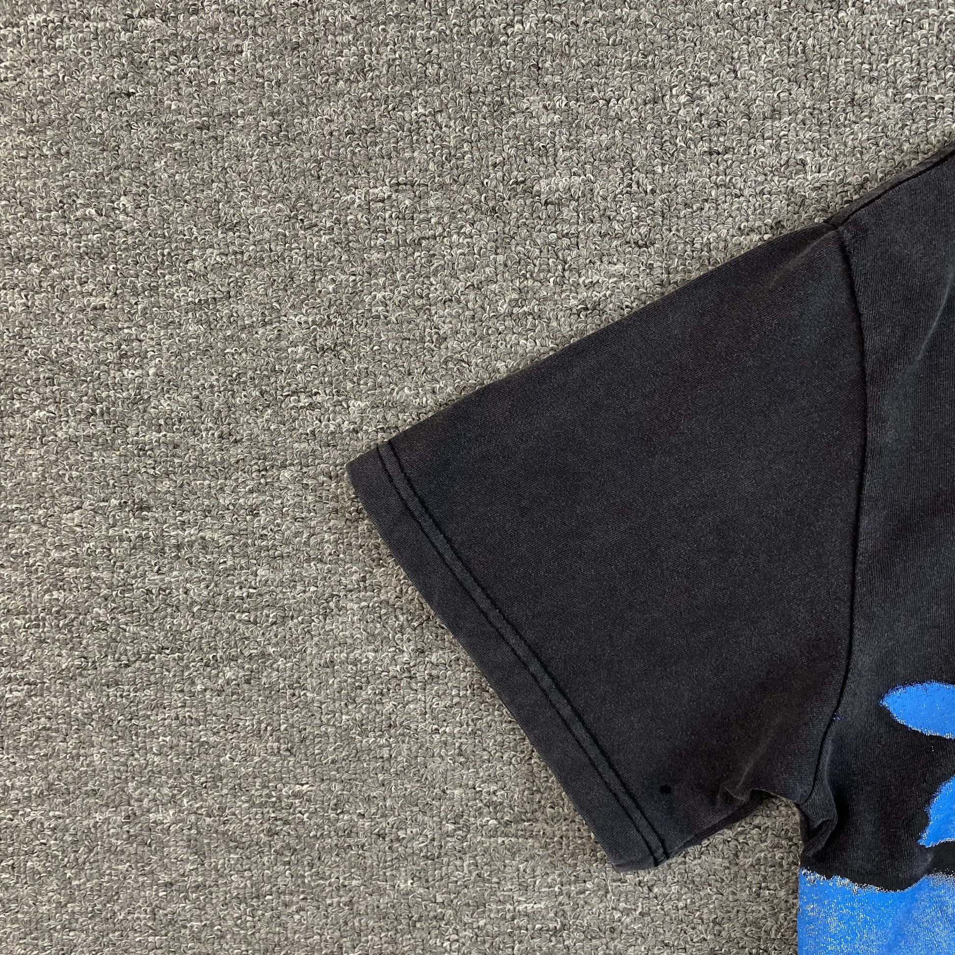 Crafted from premium heavyweight cotton, this t-shirt offers a soft, structured feel with an oversized fit, ensuring maximum comfort and long-lasting durability. The washed black base enhances its vintage, distressed aesthetic, while the bold, eerie graphic stands out, giving it a raw, underground appeal. The ribbed collar ensures durability and shape retention, making it a wardrobe staple built to last.