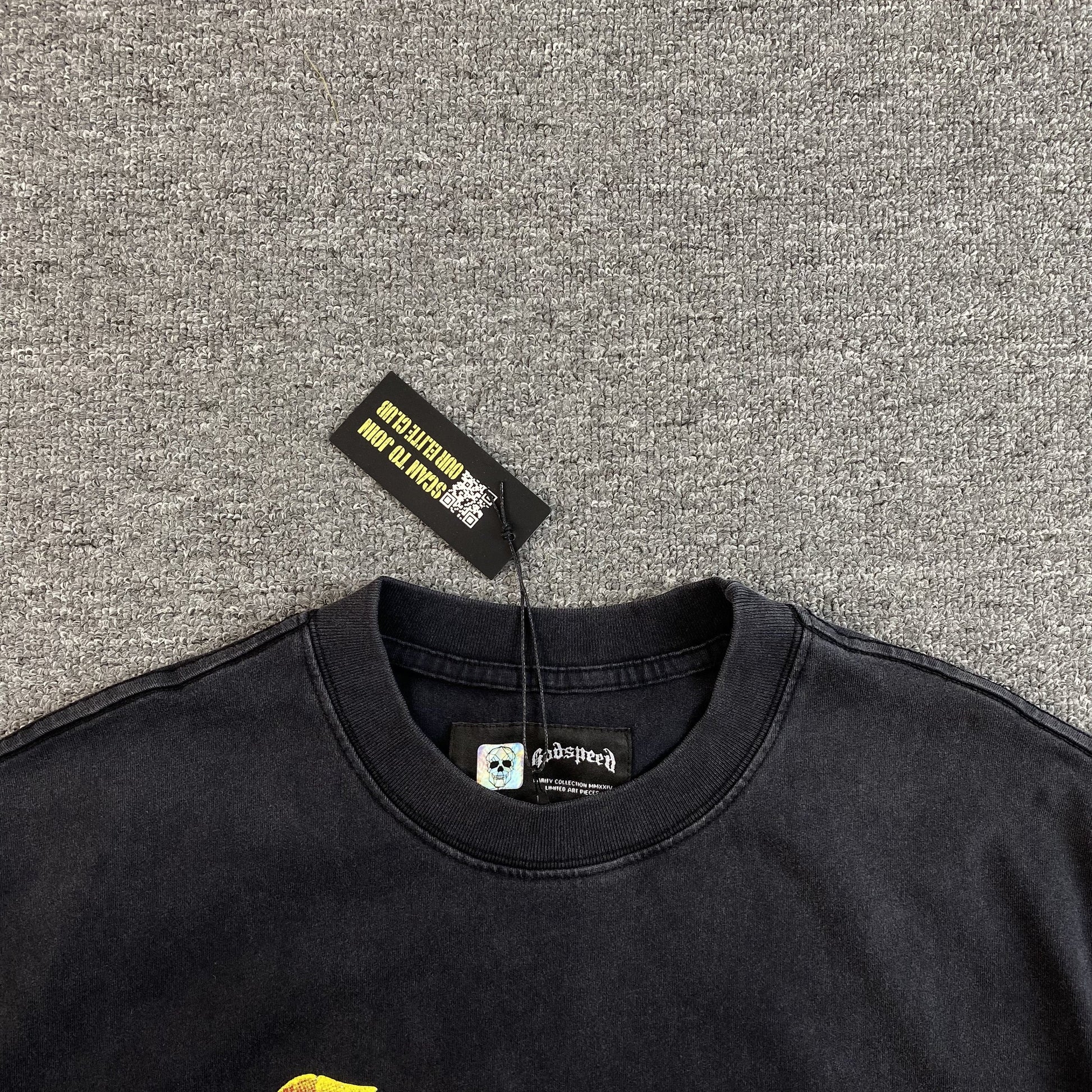 Featuring Godspeed’s signature typography and graphic print, the "Long Lonely Road" design reflects motion, ambition, and resilience, set against a sleek black colorway for a timeless and versatile look. The distressed detailing and vintage racing inspiration add an authentic edge, making this tee a standout piece in any streetwear rotation.