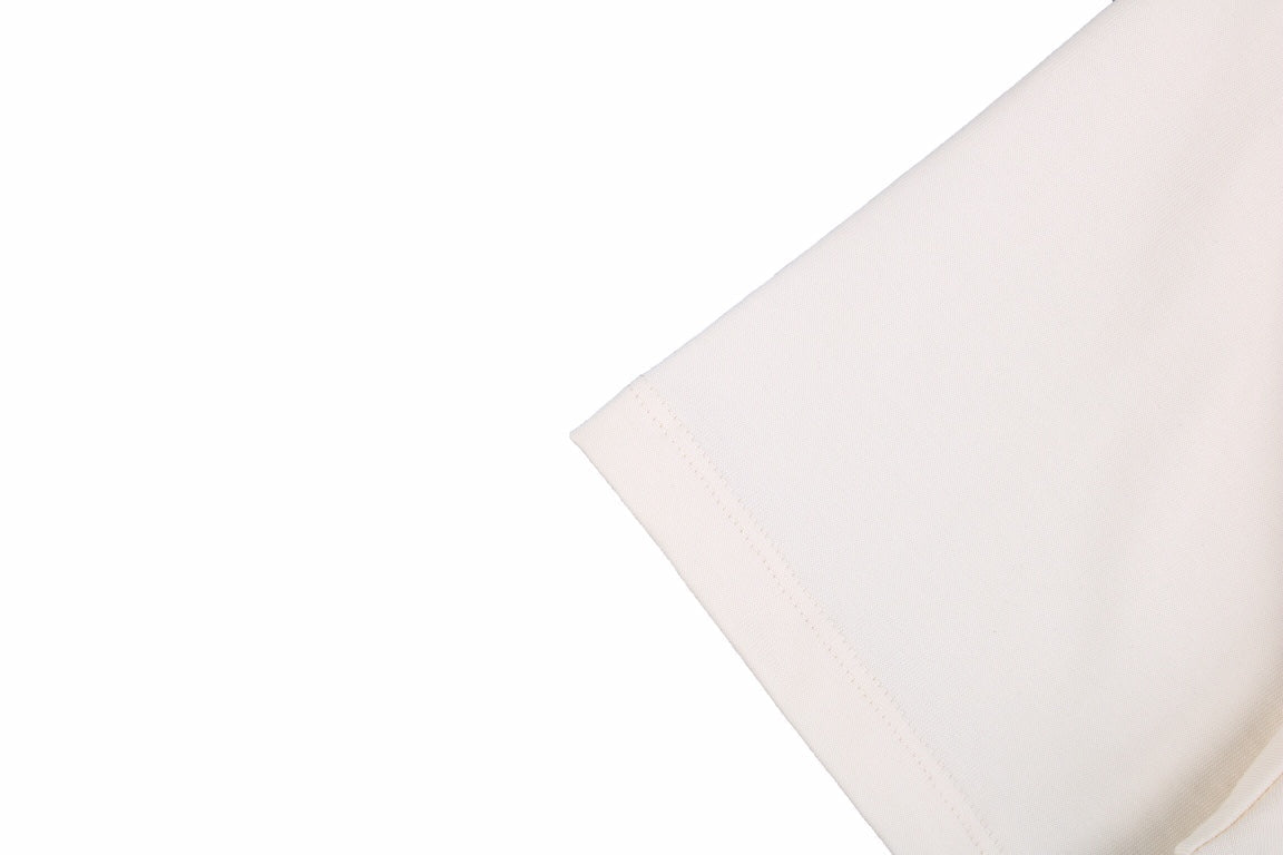 This Gucci t-shirt features a playful mushroom cluster graphic design. The cream shirt showcases a group of red and white mushrooms with the Gucci logo and the signature green and red stripe beneath. Made from high-quality materials, it ensures both comfort and style. Perfect for adding a whimsical touch to your casual wardrobe.
