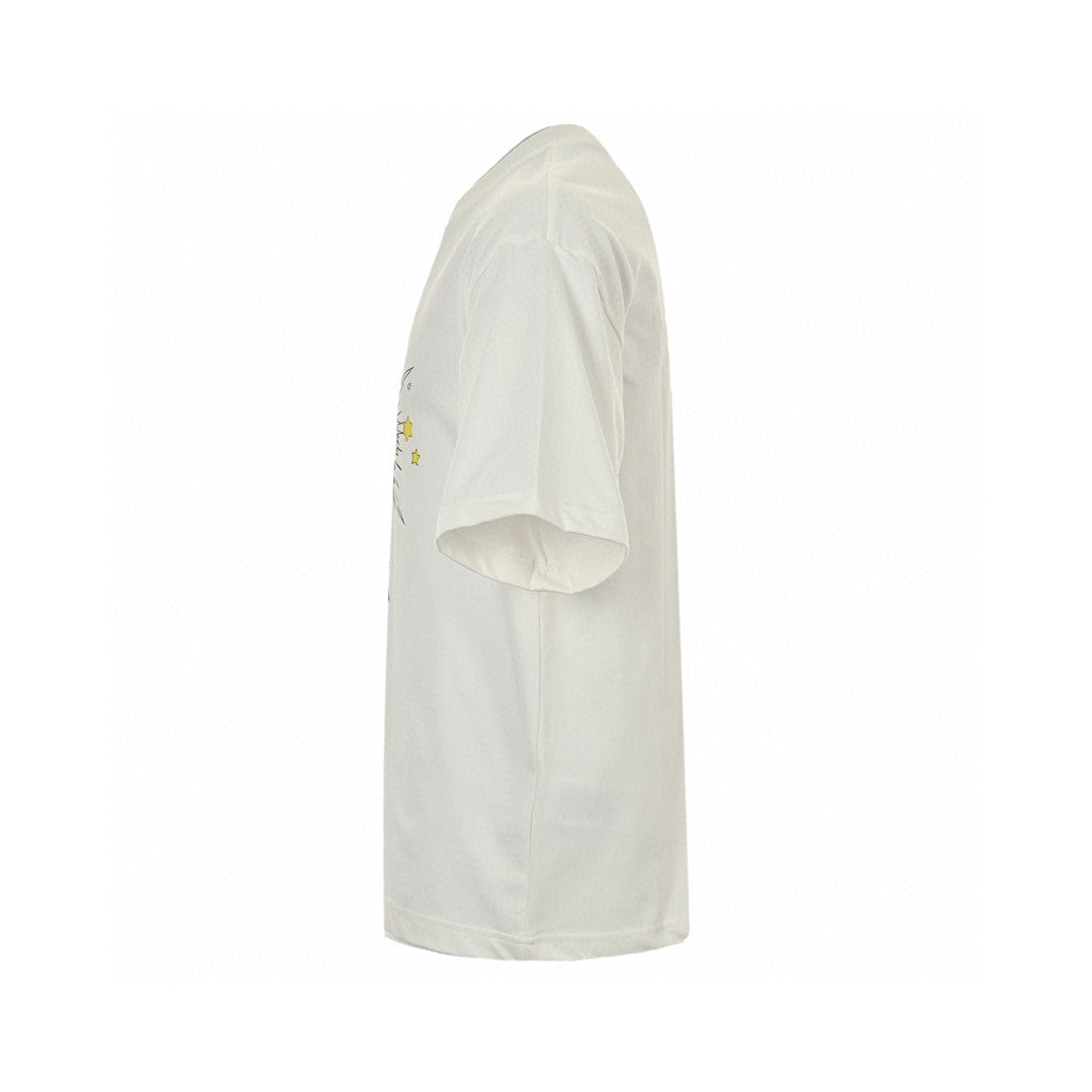This Gucci t-shirt features a striking central eye graphic surrounded by rays and stars, creating a mystical and captivating design. The classic white background highlights the intricate artwork, making it a unique and stylish piece for any wardrobe.