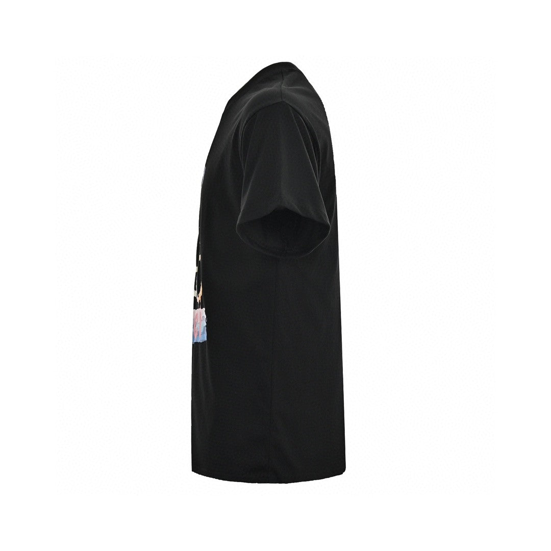 This Gucci t-shirt features a playful and vibrant design with a colorful teddy bear graphic and the Gucci logo. The black cotton fabric provides a striking contrast for the eye-catching artwork, making this t-shirt a fun and stylish addition to any wardrobe. The blend of luxury and whimsy makes it a standout piece for casual and fashionable looks.