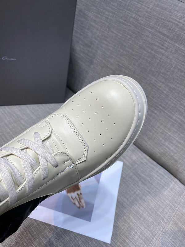 These boots feature a striking off-white leather upper, contrasted by a black panel on the inside, creating a dynamic and eye-catching design. The high-quality leather ensures durability and a luxurious feel, while the clean lines and robust construction add to the overall rugged aesthetic. The design is completed with white laces and a white rubber sole, providing a cohesive and sophisticated look.