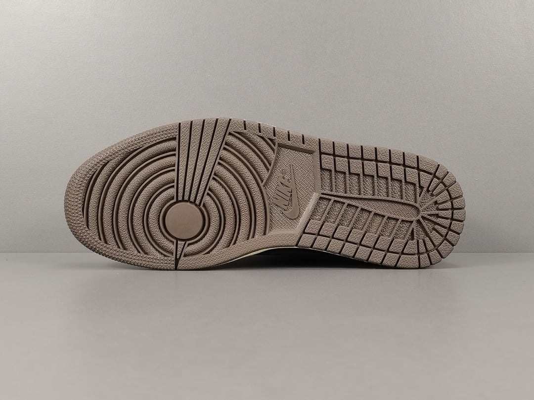 The Jordan 1 Low Travis Scott OG SP showcases a stunning design that effortlessly blends streetwear aesthetics with luxury craftsmanship. The upper is crafted from a premium blend of high-quality materials, including a mix of supple leather and soft suede, ensuring durability and comfort. The iconic color scheme of earthy tones, such as brown, black, and white, adds depth and character to the shoe's overall aesthetic.