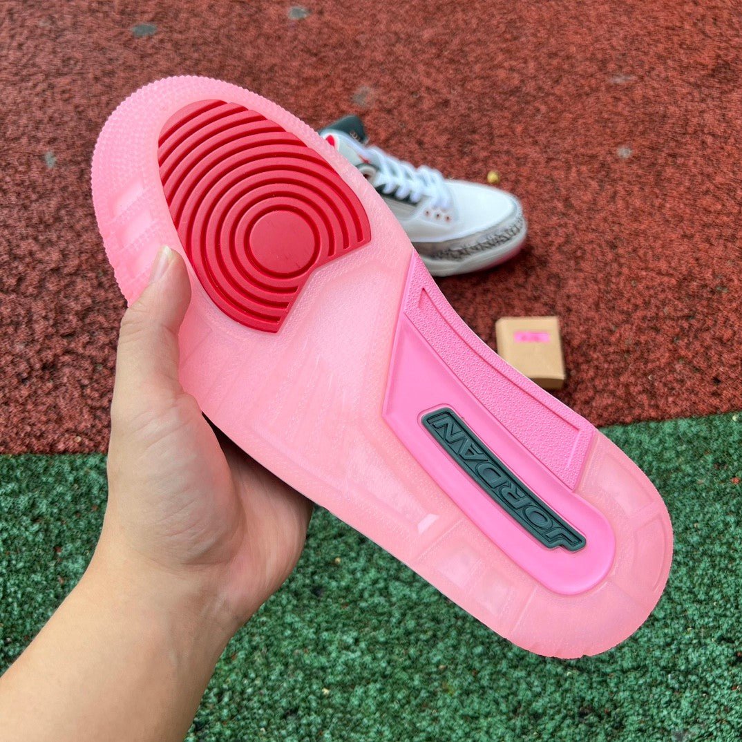 Signature elements of the Air Jordan 3 include the classic elephant print overlays and a Jumpman logo on the heel, further enhancing the shoe’s iconic status. The midsole, crafted from responsive Phylon and equipped with a visible Air-Sole unit, ensures superior cushioning and comfort with every step. The translucent outsole, featuring a subtle floral motif, provides excellent traction and durability.