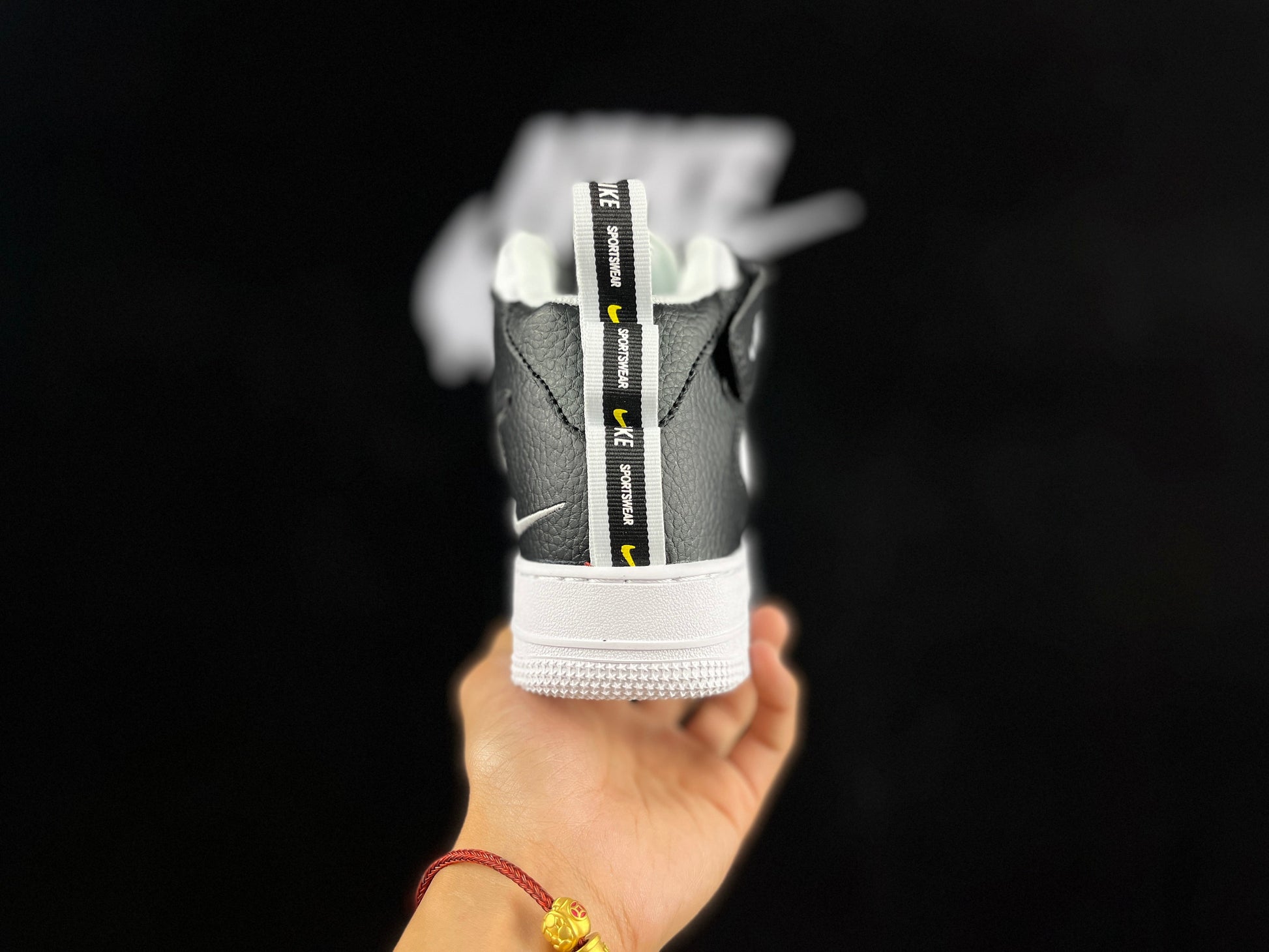 The durable rubber outsole features a classic pivot-point tread pattern, ensuring excellent traction and grip on various surfaces. The Nike Air Force 1 High "White/Black" effortlessly blends classic style with modern functionality, making it a versatile and enduring addition to any sneaker collection.