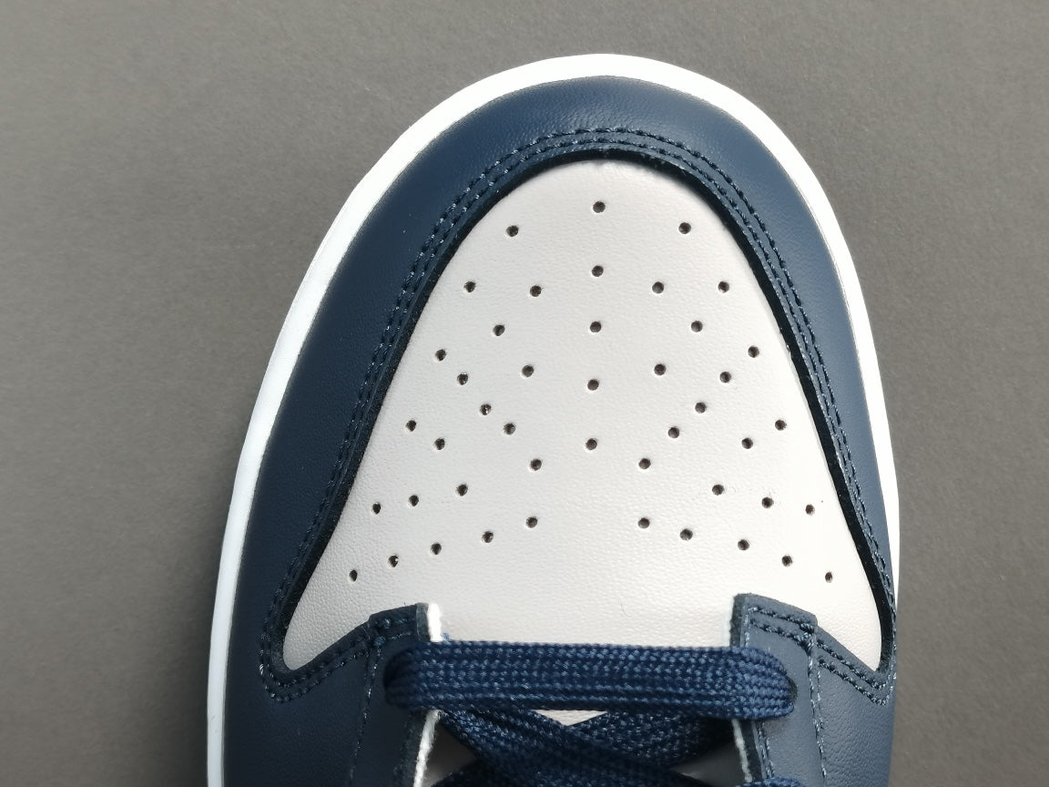 The Nike Dunk x Georgetown sneakers feature a classic and timeless design inspired by the Georgetown Hoyas basketball team. The iconic Hoyas colorway, consisting of navy blue and gray, creates a sophisticated and collegiate aesthetic. The premium materials, including leather and textile overlays, ensure durability and a premium look and feel.