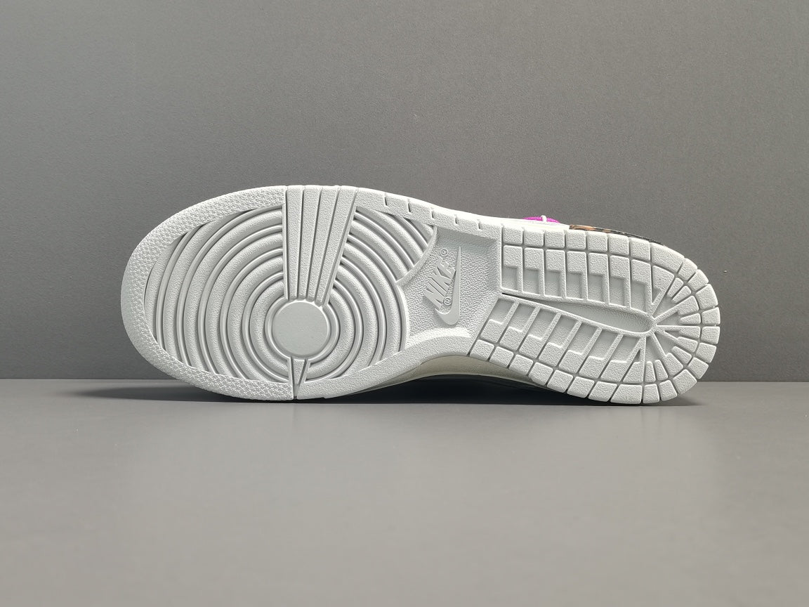 The Nike Dunk x Off-White Lot 28 sneakers showcase a captivating blend of materials, textures, and colors, resulting in a visually striking and unconventional aesthetic. With Off-White's signature deconstructed design elements, including exposed foam, stitching details, and text overlays, these sneakers embody a fearless and innovative style that sets them apart.