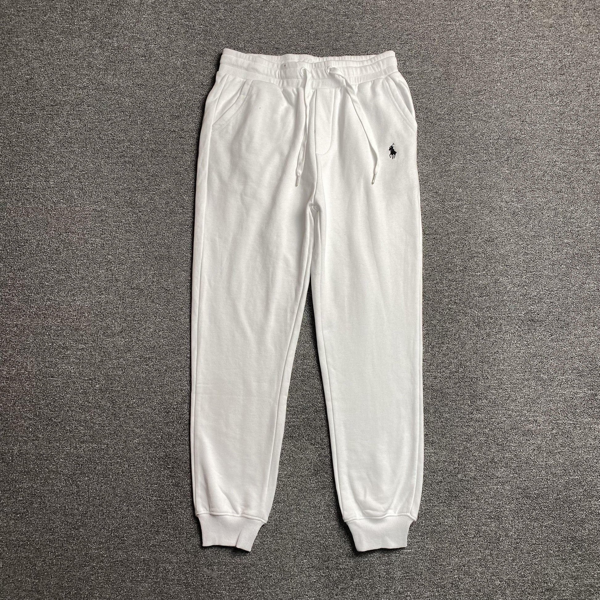 Dressed in a clean, crisp white colorway, they feature the iconic Polo Ralph Lauren embroidered pony logo, adding a subtle yet sophisticated detail. The elastic waistband with an adjustable drawstring offers a customized fit, while the tapered leg and ribbed cuffs deliver a modern, streamlined silhouette.