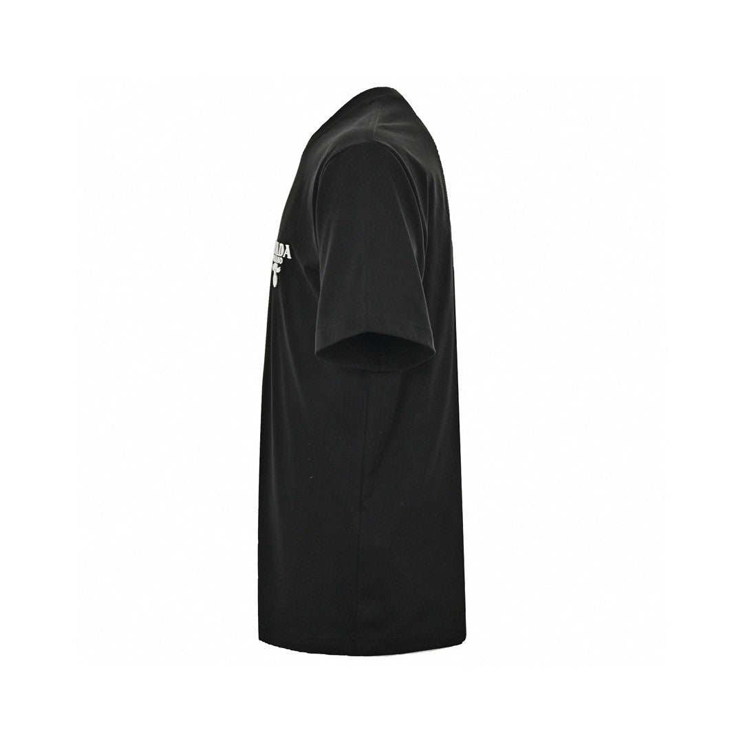 This Prada t-shirt features a minimalist black design. It has the Prada Milano logo printed on the chest in white, along with a small emblem. The clean and simple aesthetic makes it perfect for a modern, refined look. Ideal for both casual and semi-formal occasions.