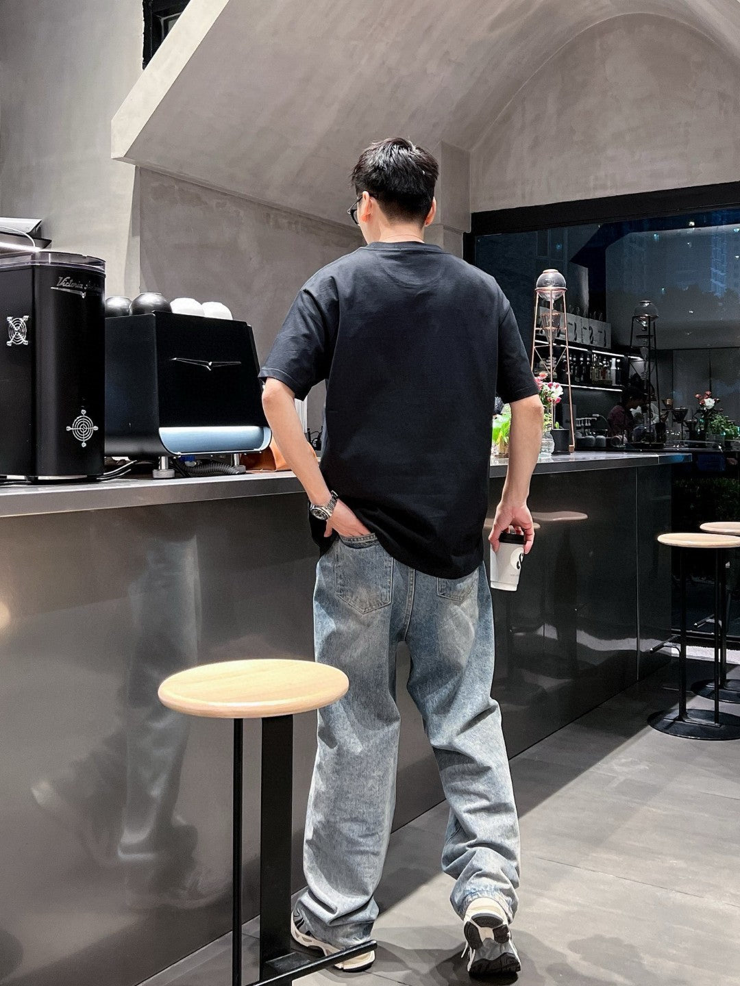 This Prada t-shirt features a sleek black base with bold "PRADA MILANO" branding across the chest. The minimalist design accentuates the iconic brand name, making it a versatile and stylish addition to your wardrobe. The high-quality fabric ensures comfort and durability, perfect for everyday wear.