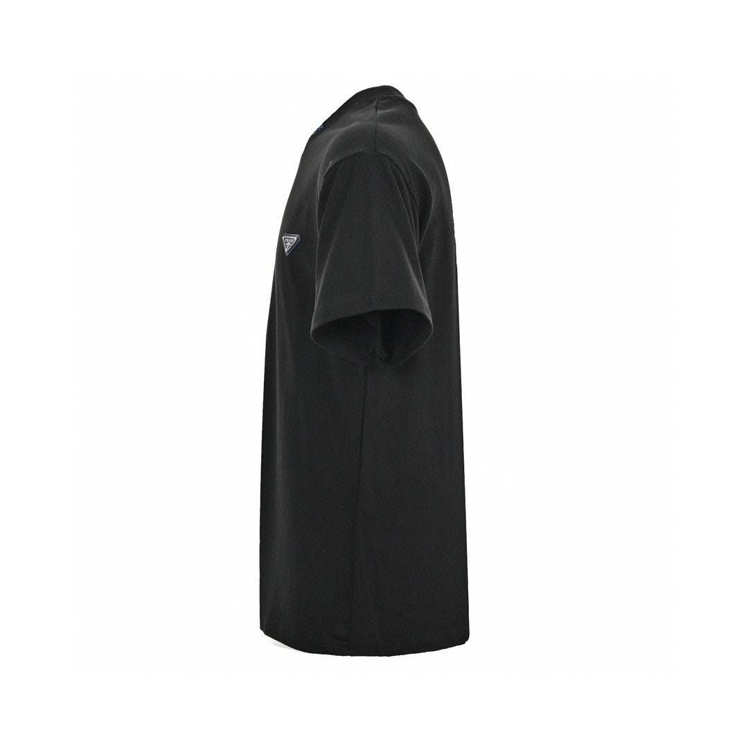 This Prada t-shirt features the iconic Prada triangle logo on the chest. Made from premium black cotton, it exudes sophistication and style. Perfect for adding a touch of luxury to everyday wear.