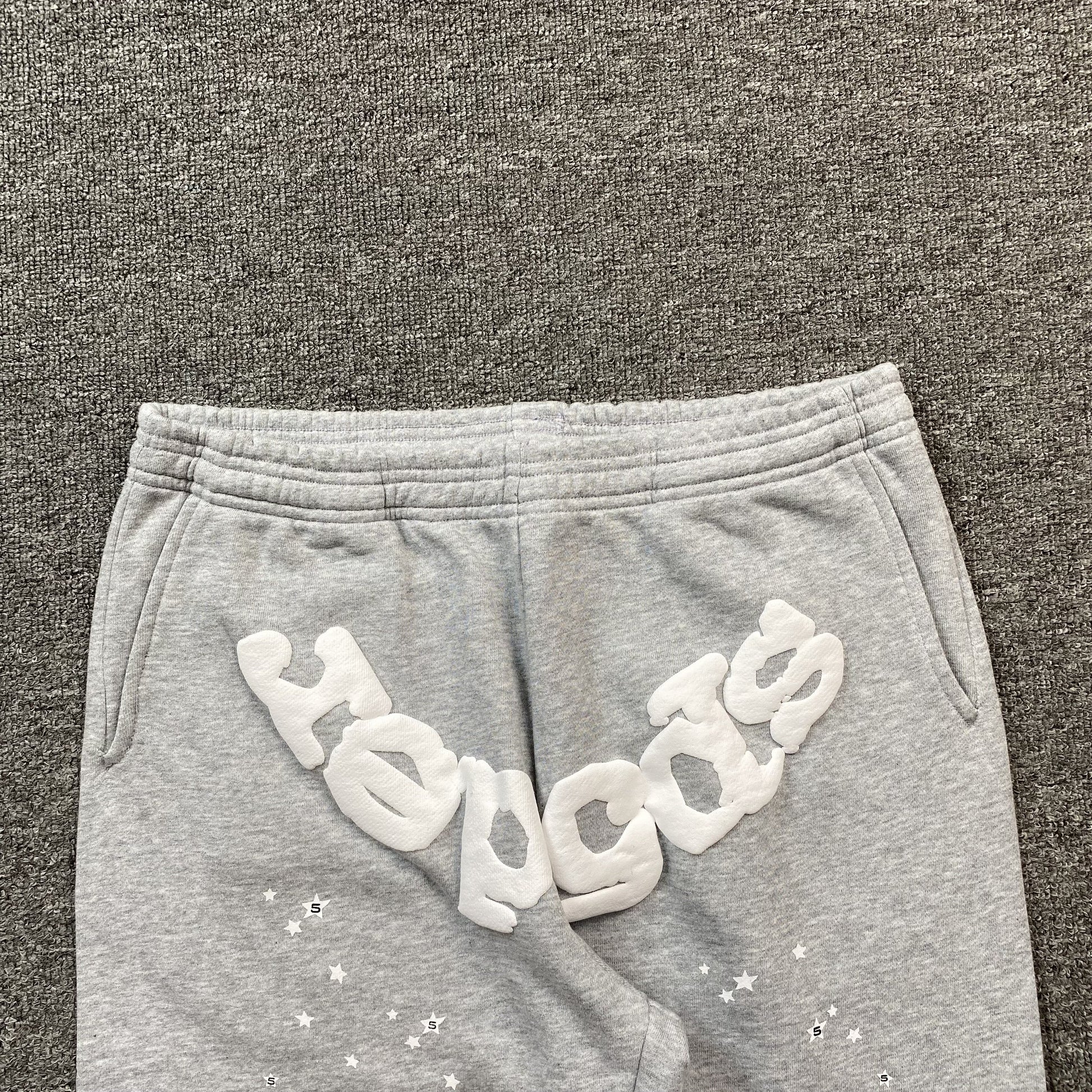 Featuring SP5DER’s iconic web-inspired graphics running down the legs, the heather grey colorway adds a clean and versatile touch to any fit. Designed with an adjustable drawstring waistband, ribbed cuffs, and functional pockets, these sweatpants seamlessly blend practicality with standout aesthetics.